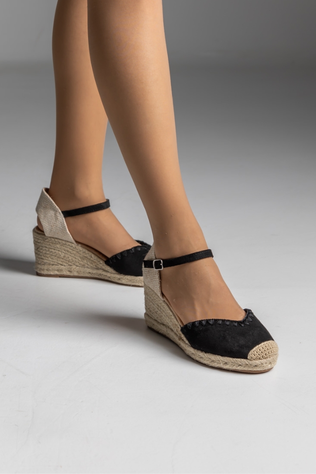 Πλατφόρμα με ψάθινο suede – Μαύρο