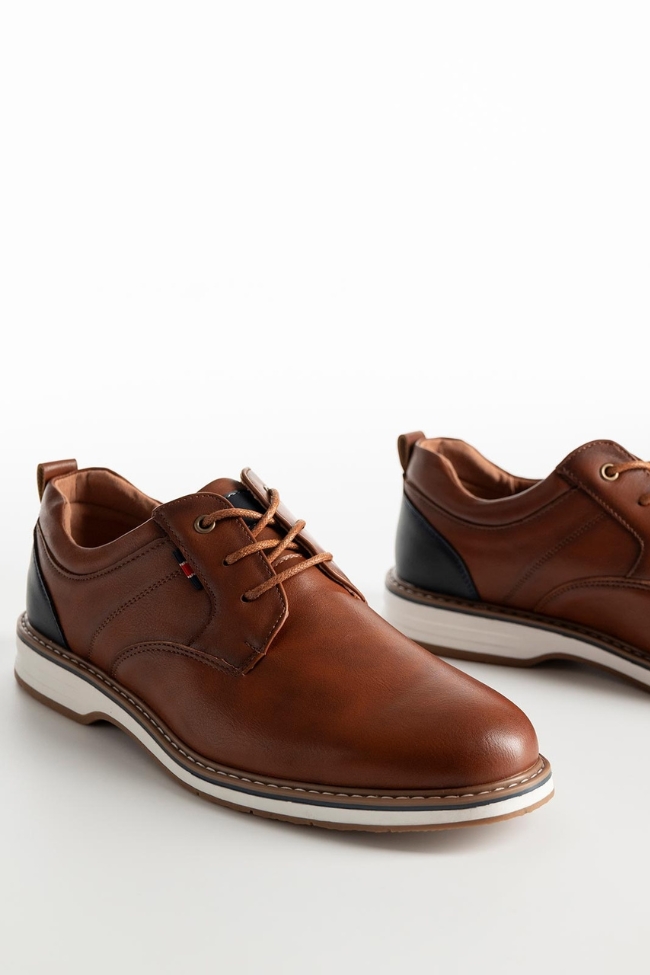 Ανδρικά Casual Δετά Παπούτσια με Δερμάτινο Πάτο – Κάμελ