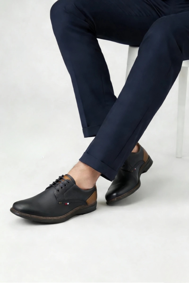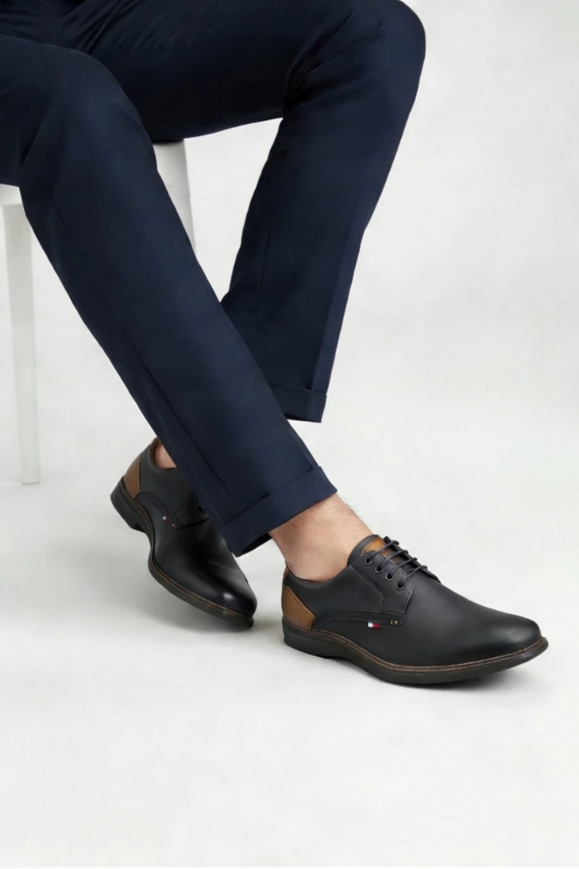 Ανδρικά casual με κορδόνια και καφέ λεπτομέρειες – Μαύρο
