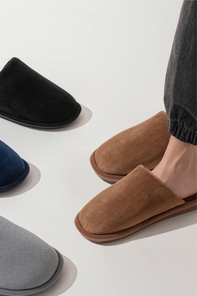 Ανδρικές παντόφλες σουέτ με εσωτερική γούνα.