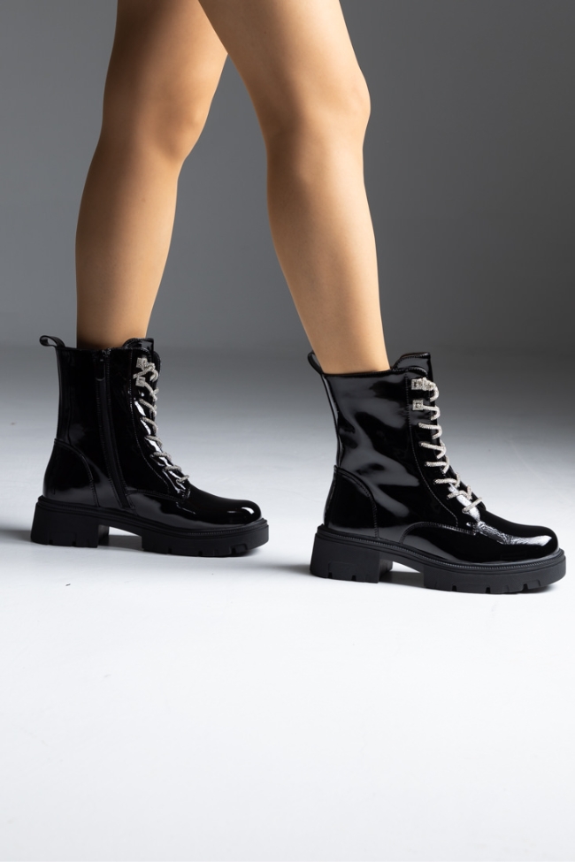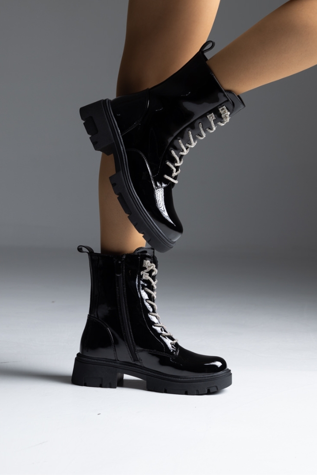 Αρβυλάκι λουστρίνι με κορδόνια strass – Μαύρο