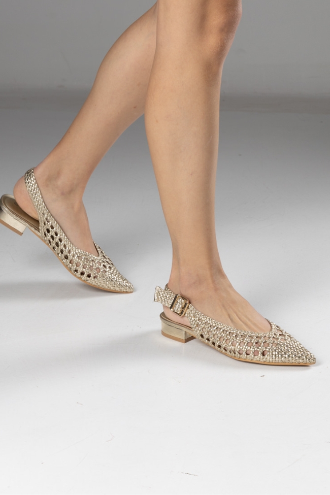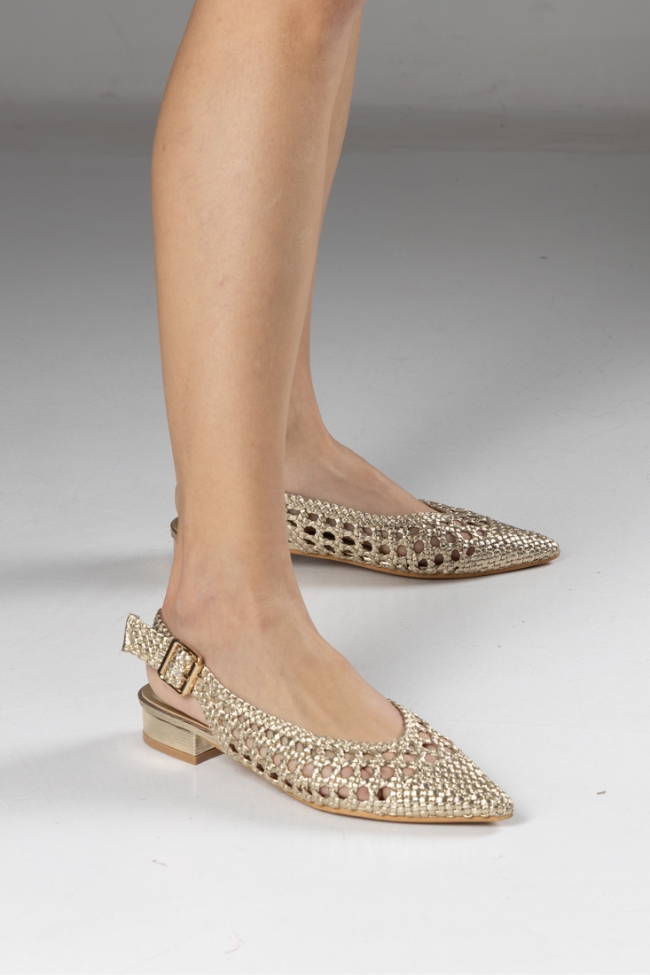 Γοβάκια Μυτερά με Πλεκτή Πλέξη – Χρυσό