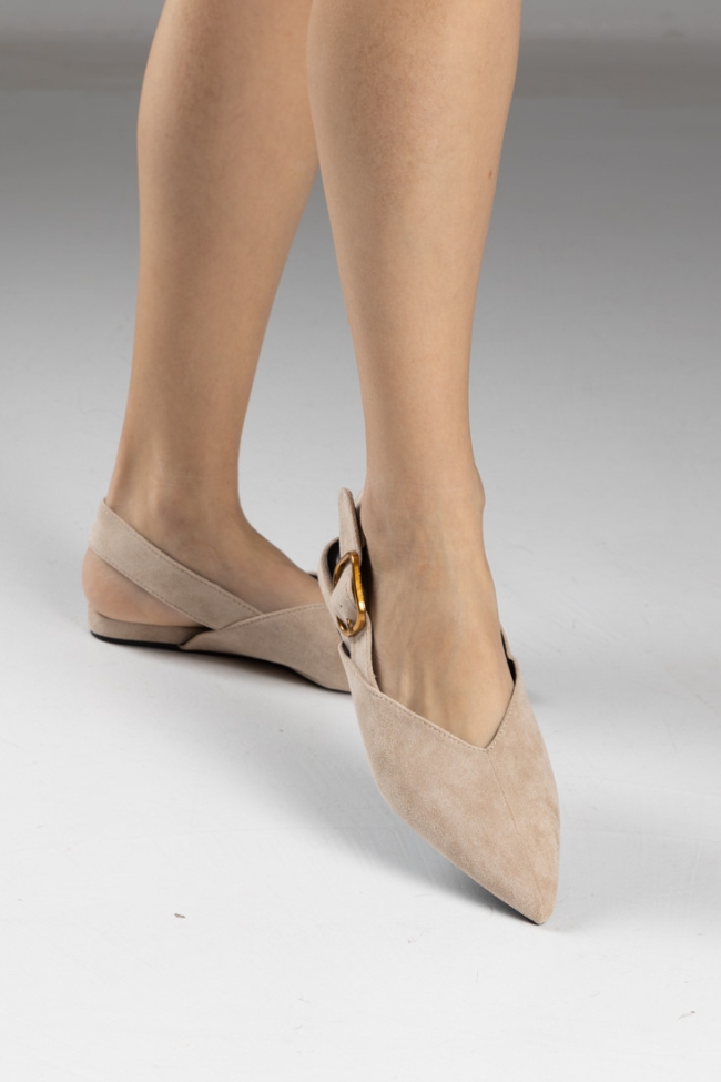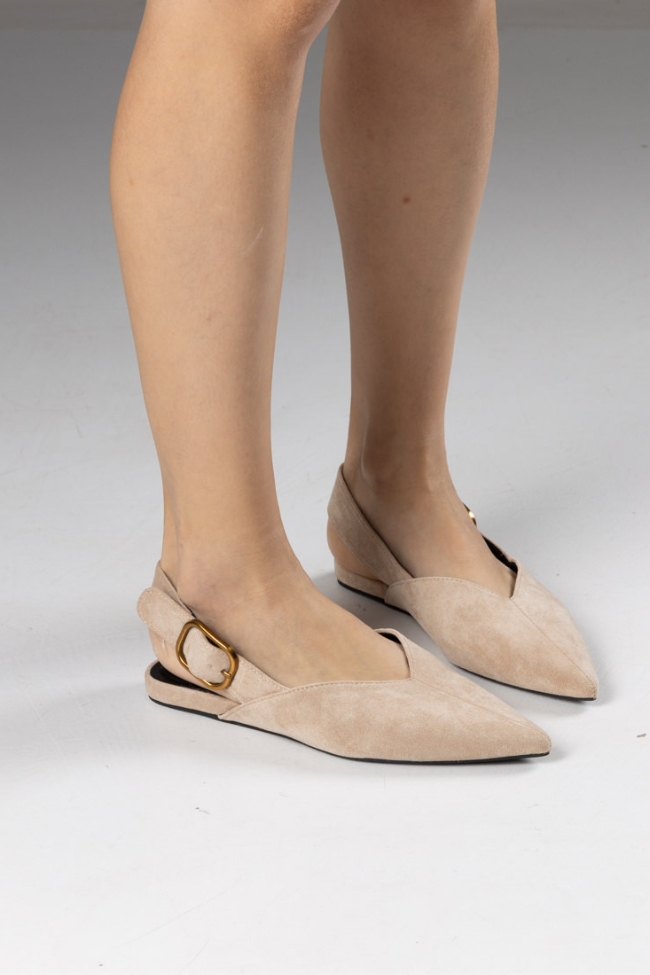 Γοβάκια Μυτερά Slingback από Suede Υλικό – Μπεζ