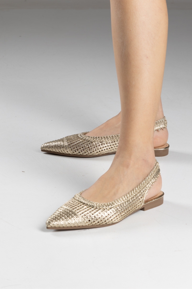 Γοβάκια ψάθινα με δέσιμο – Χρυσό
