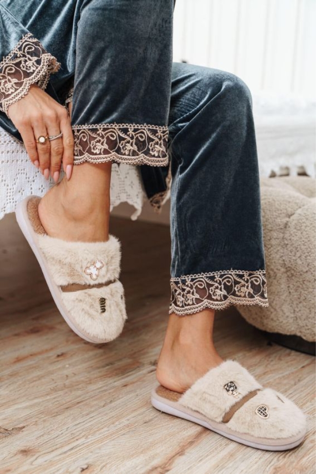 Γούνινες Παντόφλες με Διακοσμητικά Στοιχεία – Μπεζ