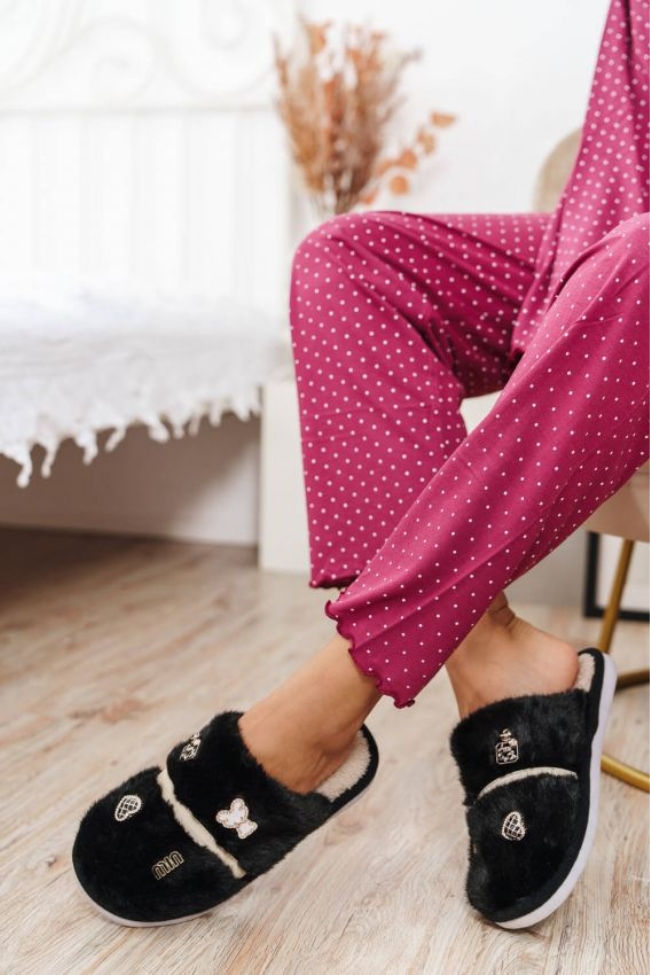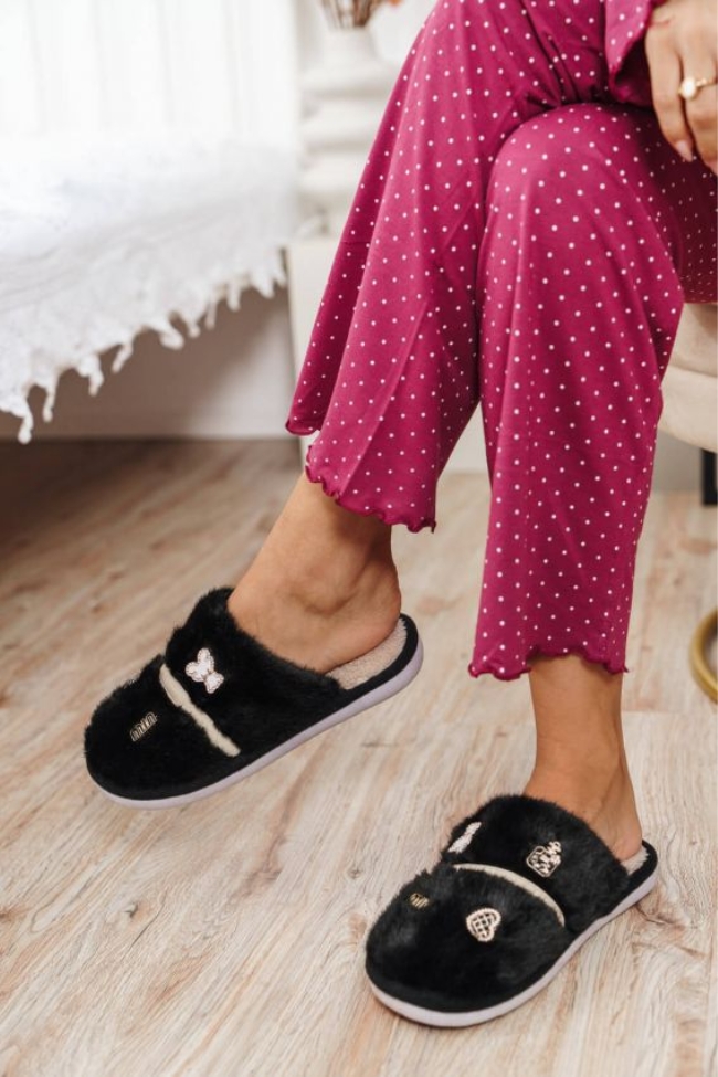 Γούνινες Παντόφλες με Διακοσμητικά Στοιχεία – Μαύρο