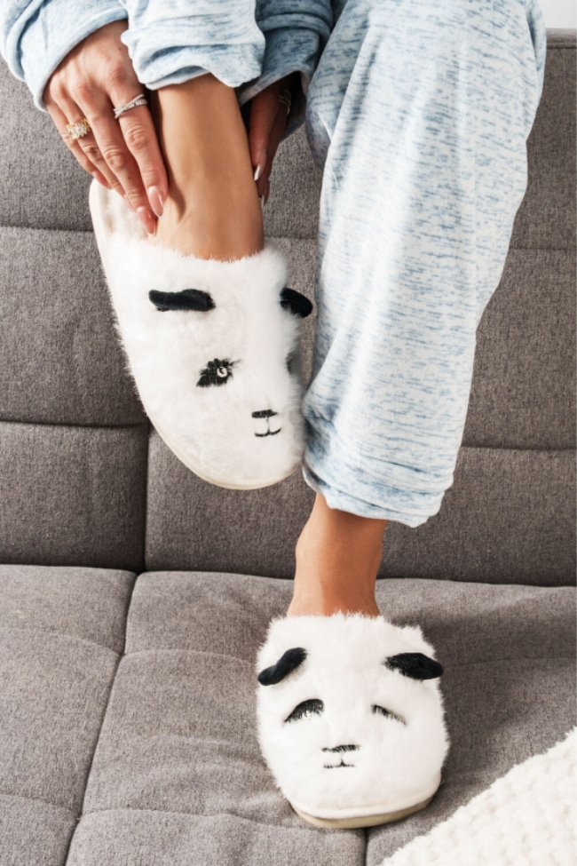 Γούνινες Παντόφλες Panda.Ανακαλύψτε τις γούνινες παντόφλες με σχέδιο panda που θα σας προσφέρουν απόλυτη άνεση και ζεστασιά κατά τη διάρκεια του χειμώνα. Διαθέσιμες σε ποικιλία χρωμάτων, αυτές οι χαριτωμένες παντόφλες συνδυάζουν μαλακή επένδυση από γούνα με διασκεδαστικό σχέδιο panda, κάνοντας τις ιδανικές για κάθε στιγμή χαλάρωσης στο σπίτι. Η αντιολισθητική σόλα τους παρέχει ασφάλεια σε κάθε βήμα. Φορέστε τις παντόφλες panda με το αγαπημένο σας pyjama set ή με άνετες fleece ρόμπες για ζεστές και χαλαρές στιγμές στο σπίτι. Επίσης, μπορούν να συνοδευτούν με χουχουλιάρικες κάλτσες για επιπλέον ζεστασιά τις κρύες νύχτες του χειμώνα.