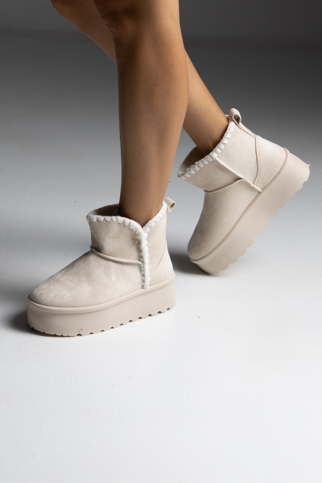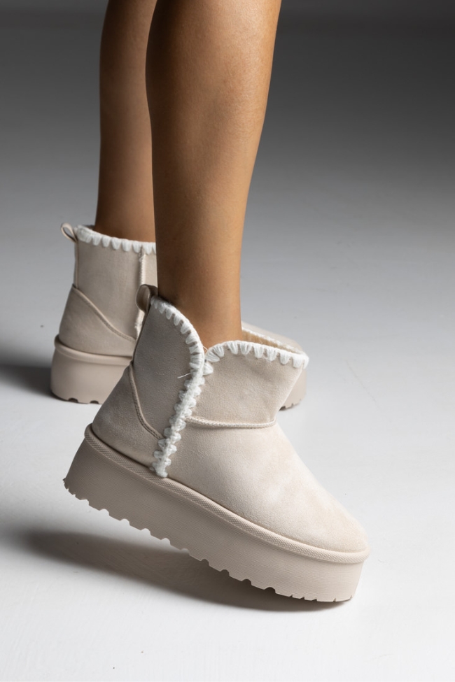 Γυναικεία μποτάκια με εσωτερική επένδυση γούνας – Μπέζ
