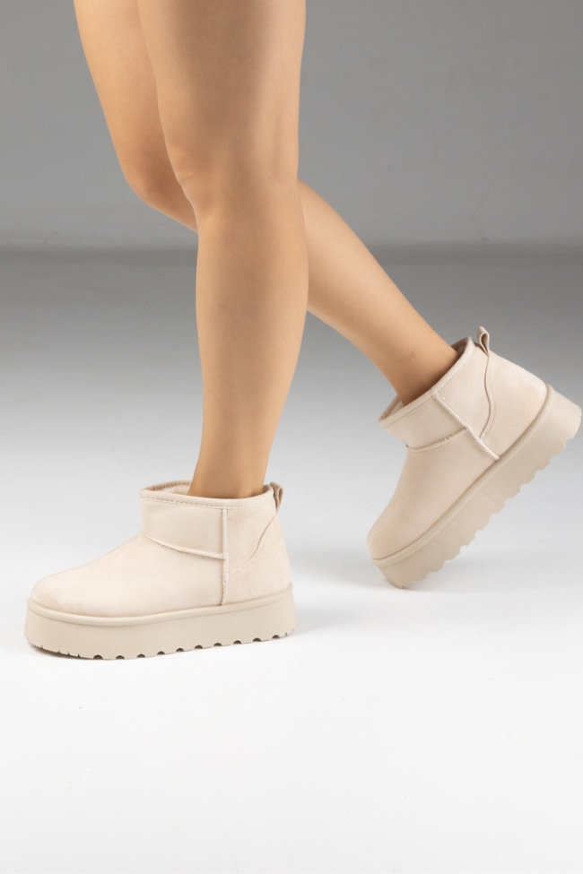 Γυναικεία μποτάκια suede με εσωτερική επένδυση γούνας και ψηλό πάτο – Μπεζ