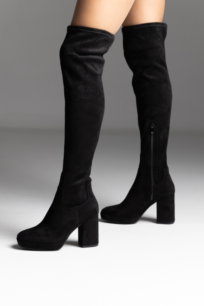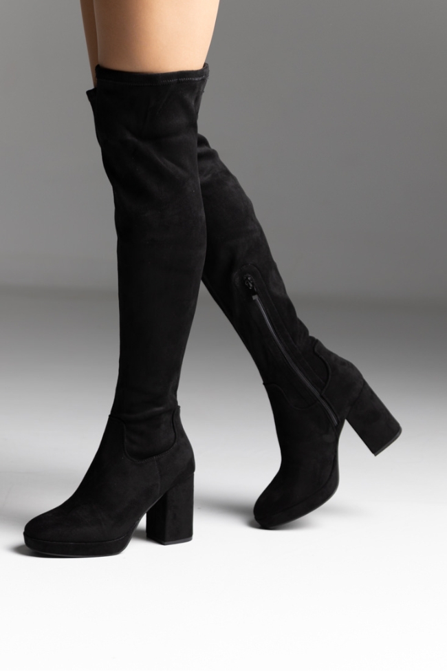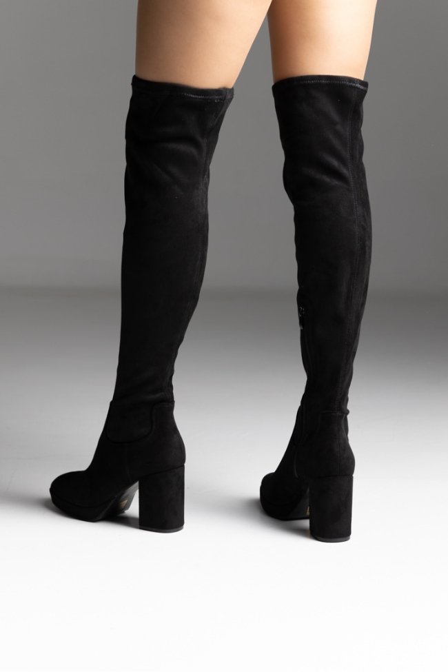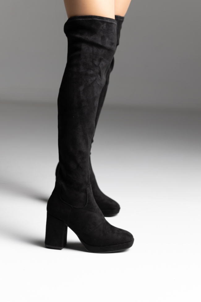 Γυναικεία μπότα με χοντρό τακούνι over the knee – Μαύρο