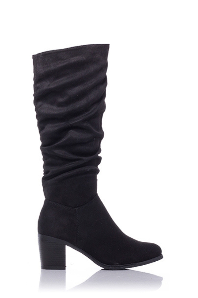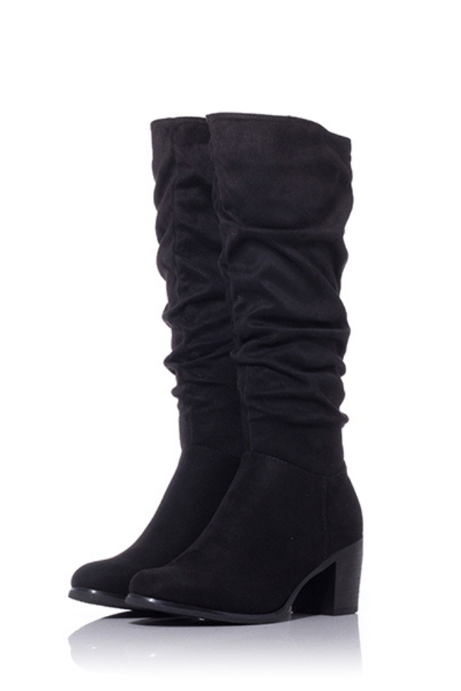 Μπότα suede με χοντρό τακούνι – Μαύρο