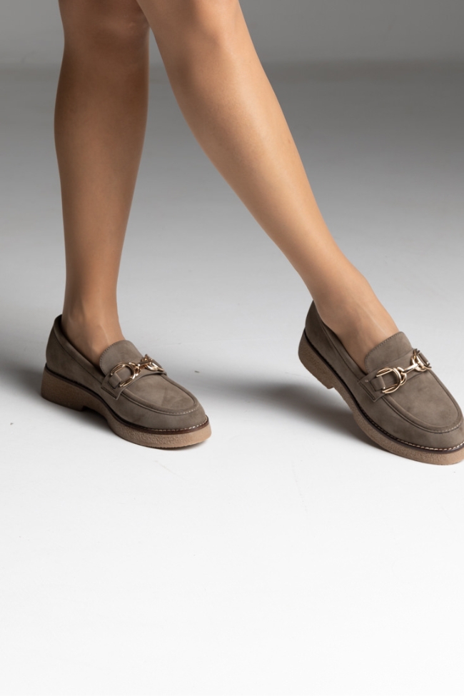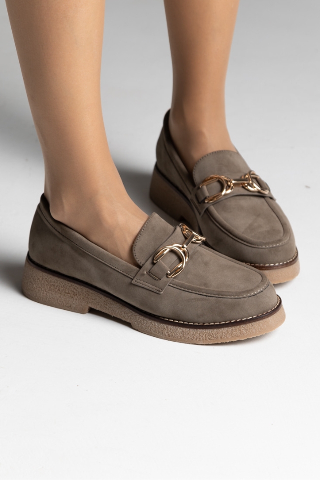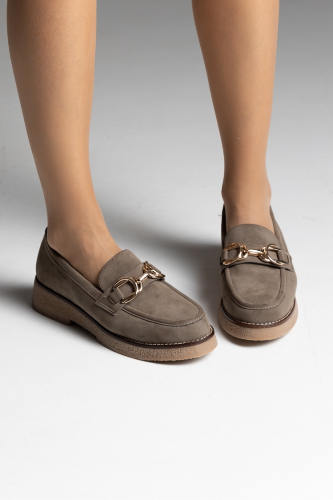 Γυναικεία loafers με κρεπ πάτο και διακοσμητικό στοιχείο – Σκούρο Μπέζ