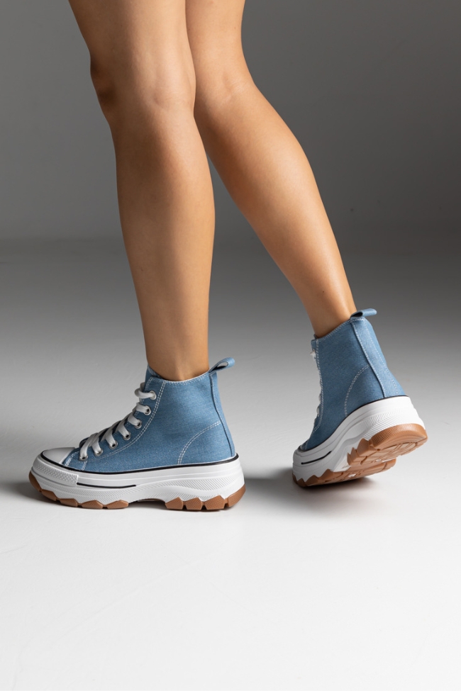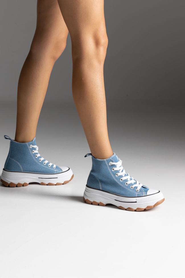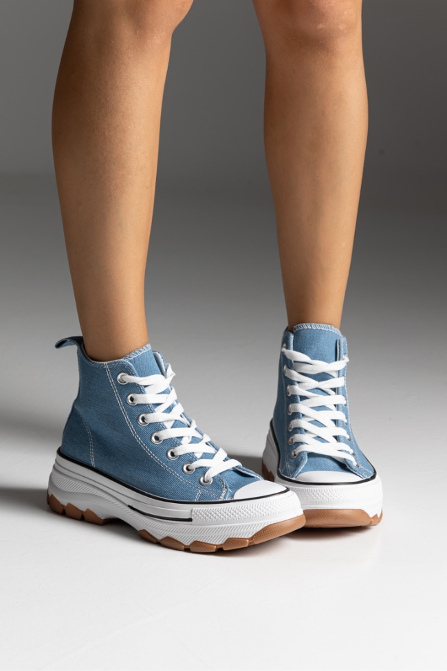 Sneakers Πάνινα με ψηλό πάτο τύπου all star μποτάκι – Μπλέ