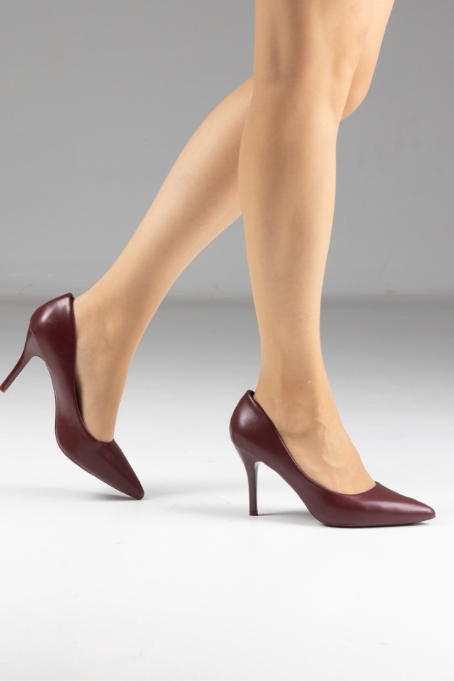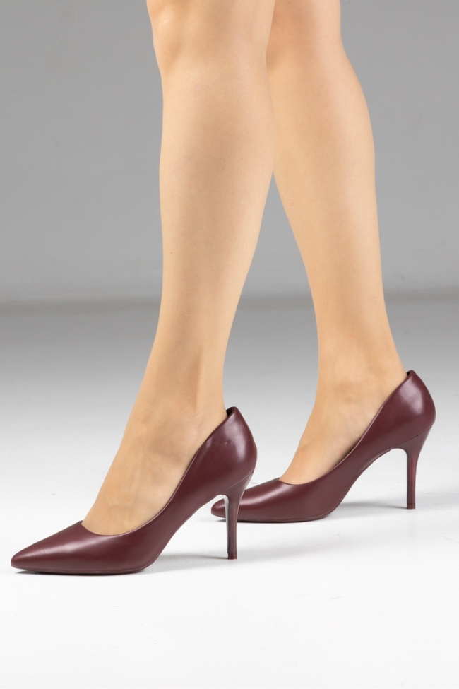 Γυναικείες γόβες δερματίνη με λεπτό τακούνι – Μπορντό