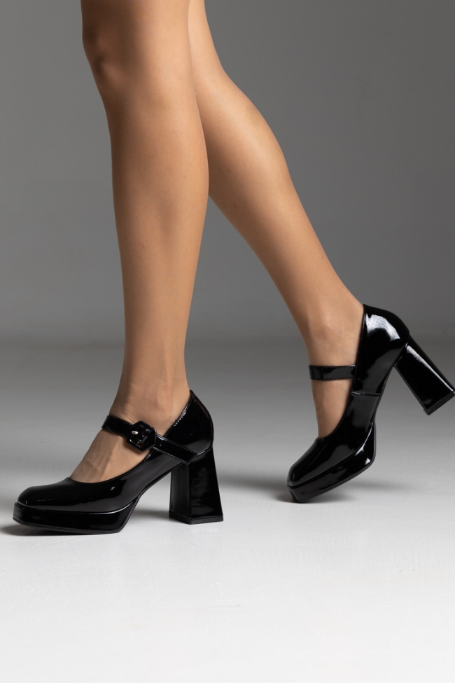 Γυναικείες γόβες με χοντρό τακούνι και μπαρέτα – Μαύρο