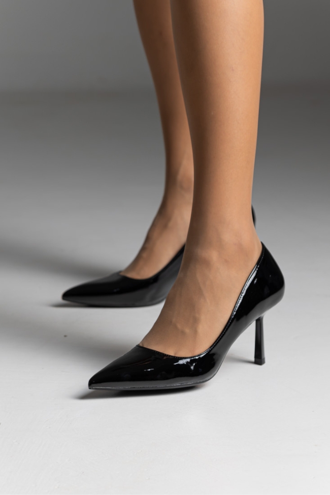 Γυναικείες γόβες μυτερές με λεπτό τακούνι – Μαύρο