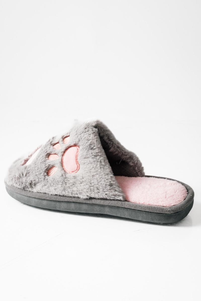 Γυναικείες χειμερινές μαλακές παντόφλες με σχέδιο πατουσάκια – Γκρι