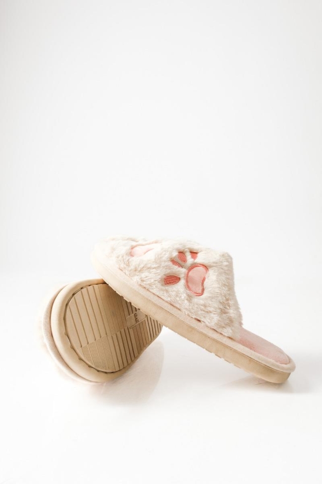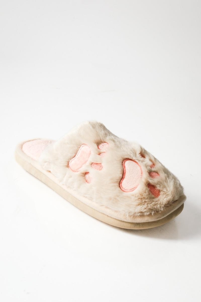 Γυναικείες χειμερινές μαλακές παντόφλες με σχέδιο πατουσάκια – Μπεζ