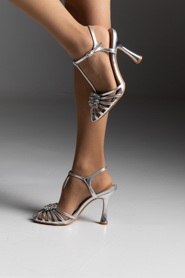 Πέδιλο δερματίνη με σχέδιο πέτρες στα δάχτυλα – Ασημί