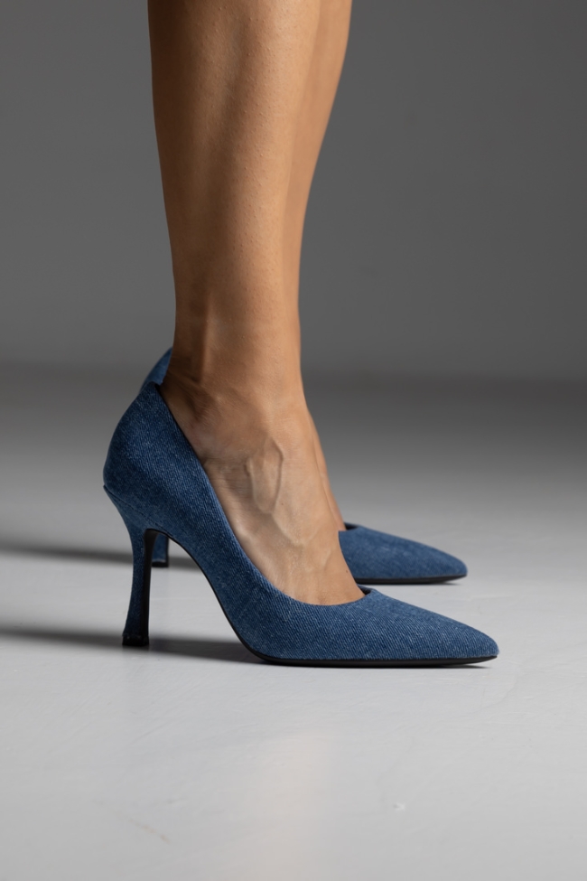 Γόβα με ύφασμα jean,με λεπτό τακούνι μυτερή – Denim