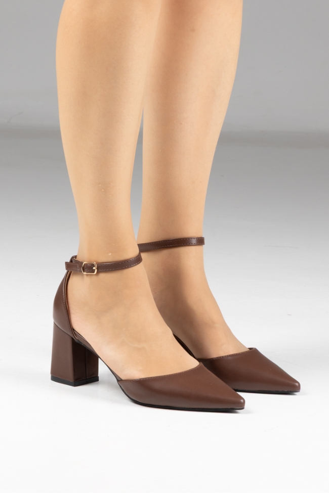 Γόβες Μυτερές με Μπαρέτα και χονδρό τακούνι – Καφέ
