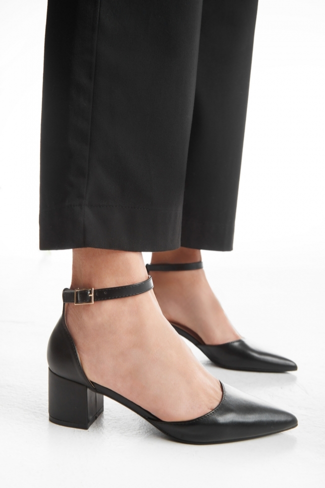 Γόβες Μυτερές με Μπαρέτα – Μαύρο