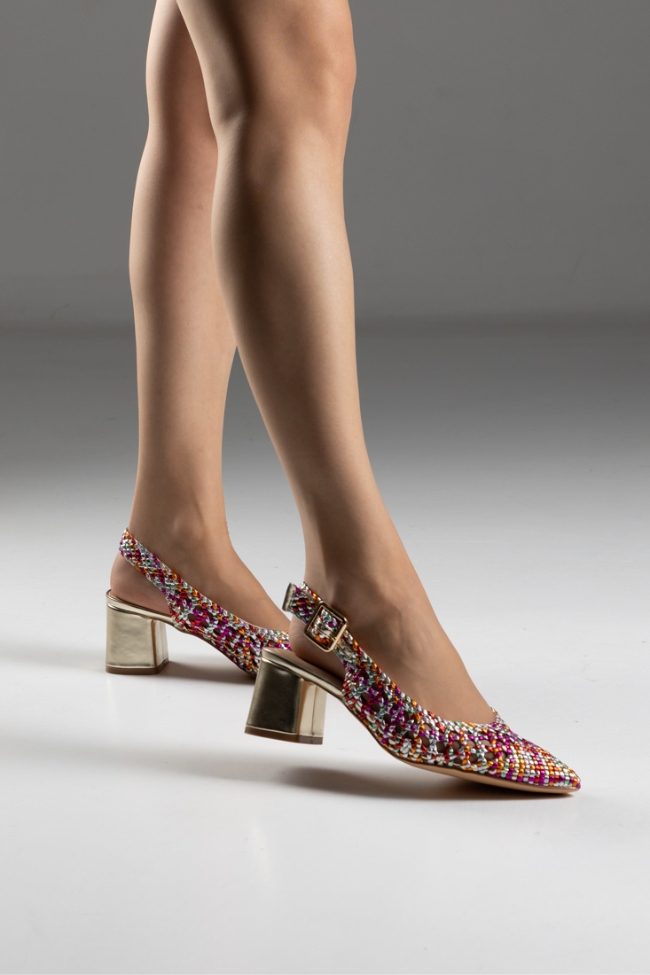 Γόβες Slingback με χοντρό τακουνι και Πλεκτό Σχέδιο – Πολύχρωμες