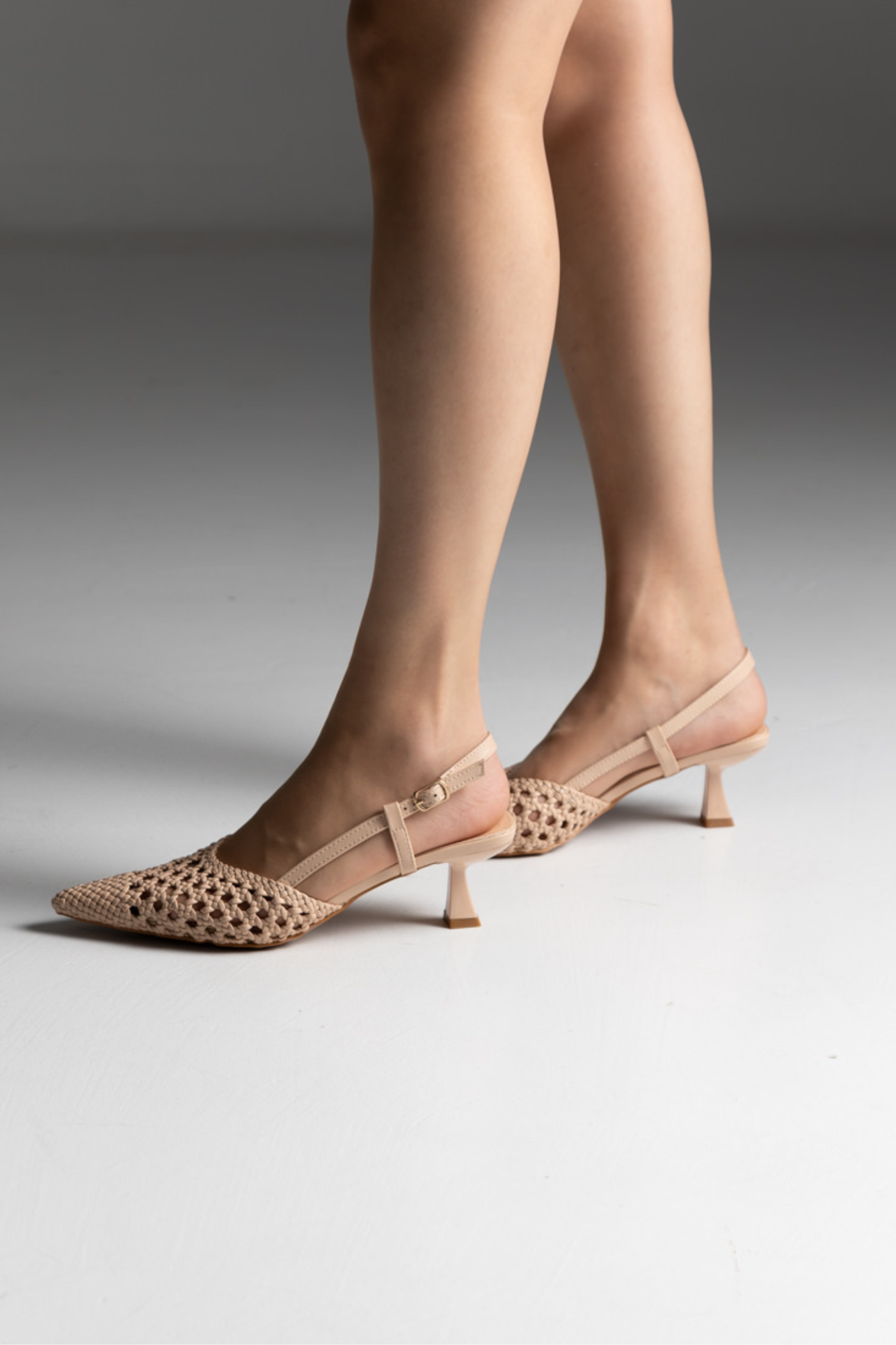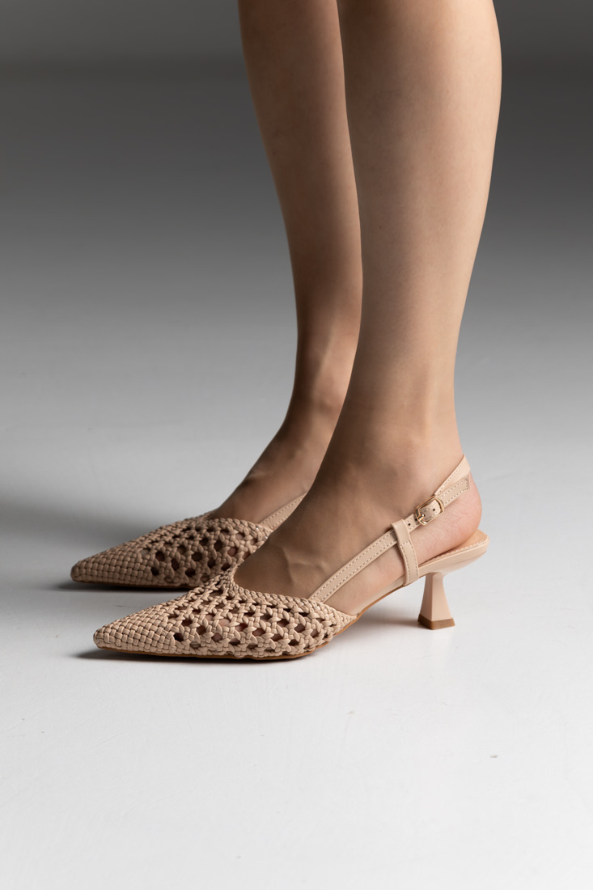 Γόβες Slingback Μυτερές με Πλεκτό Σχέδιο – Μπέζ