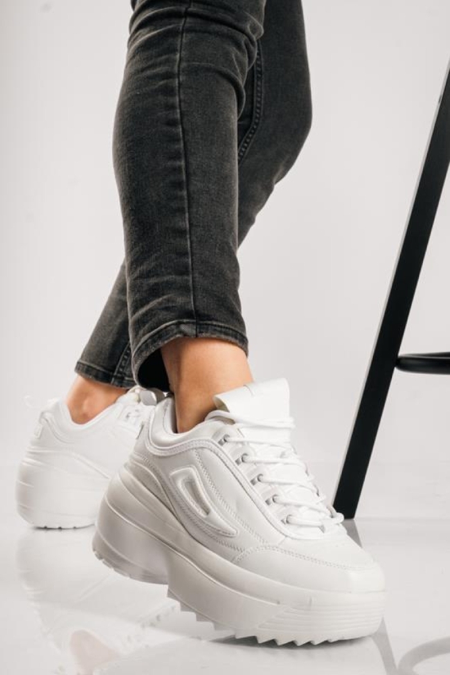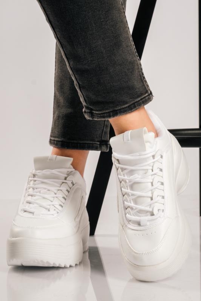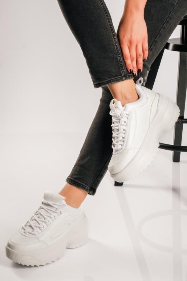 Λευκά Sneakers Γυναικεία Δίπατα. Εκπληκτικό παπούτσι, ανθεκτικό σε όλες τις συνθήκες και με μοντέρνο in fashion στυλ που ξεχωρίζει. Μία άνετη και στιλάτη επιλογή που θα σας συντροφεύουν μοναδικά σε κάθε casual εμφάνισή σας. Εσωτερικά το ύφασμα είναι από αναπνέων ύφασμα mesh για να αναπνέει το πόδι. Έχει ύψος 7,5 εκατοστά που σου δίνει έξτρα ύψος και casual διάθεση για την καθημερινότητα σας και όλα τα στυλ ένδυσης. Όλα τα παπούτσια δοκιμάζονται από εμάς για την καλύτερη εξυπηρέτηση σας, τα συγκεκριμένα έχουν κανονική γραμμή