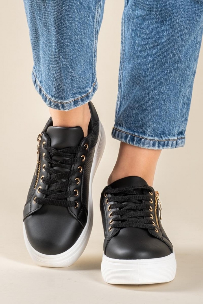 Δίσολα sneakers με διακοσμητικό φερμουάρ στο πλάι – Μαύρο