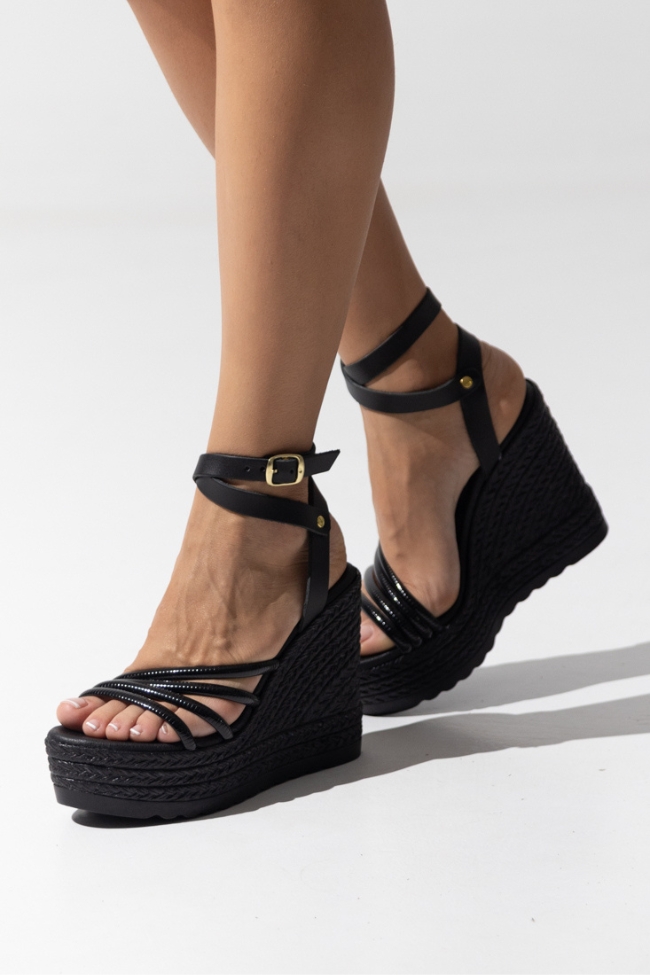 Δερμάτινες (LEATHER) Ελληνικές Πλατφόρμες με λουράκια μπρασελέ – Μαύρο
