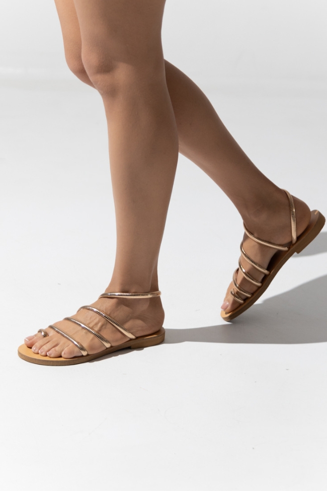 Δερμάτινες (LEATHER) Ελληνικής κατασκευής Σανδάλια με λουράκια μπρασελέ λοξά – Σαμπανί