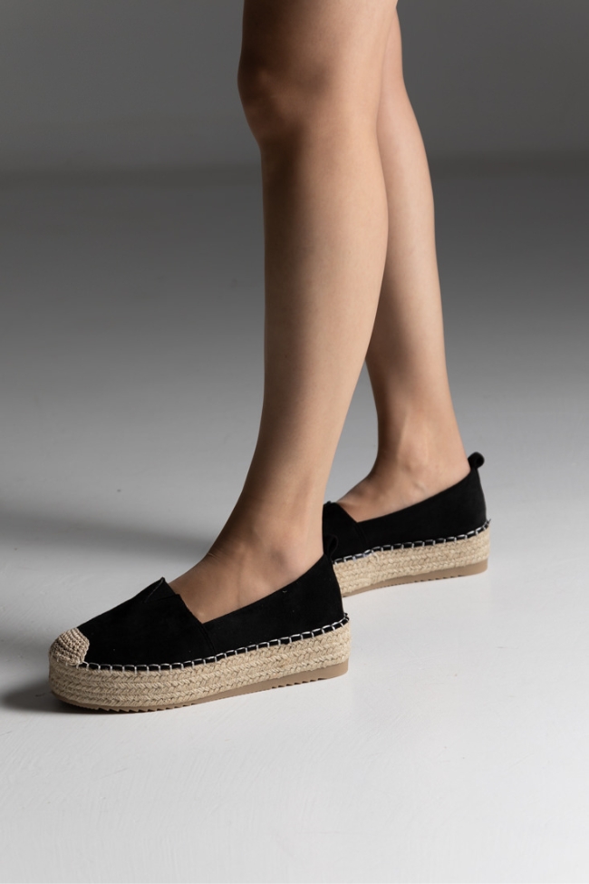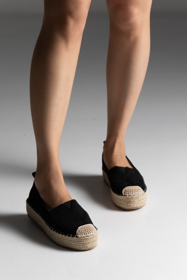 Εσπαντρίγιες Δίσολες suede με ψάθινο πάτο – Μαύρο