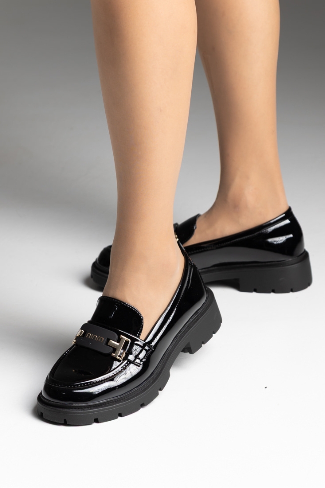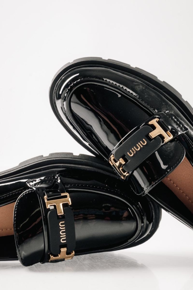 Λουστρίνι loafers με chunky τρακτερωτή σόλα και εντυπωσιακή αγκράφα – Μαύρο