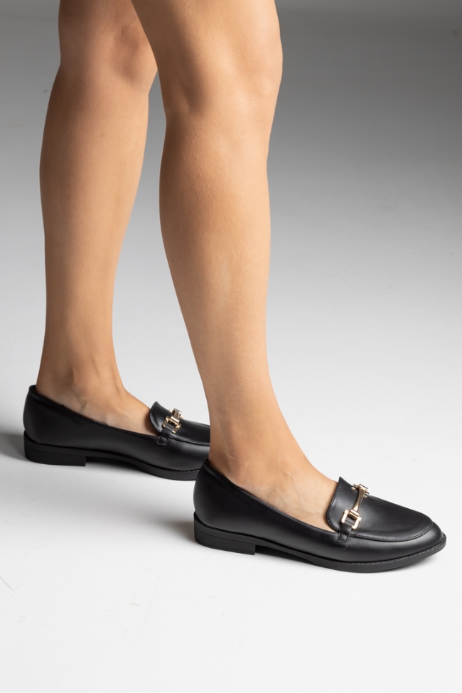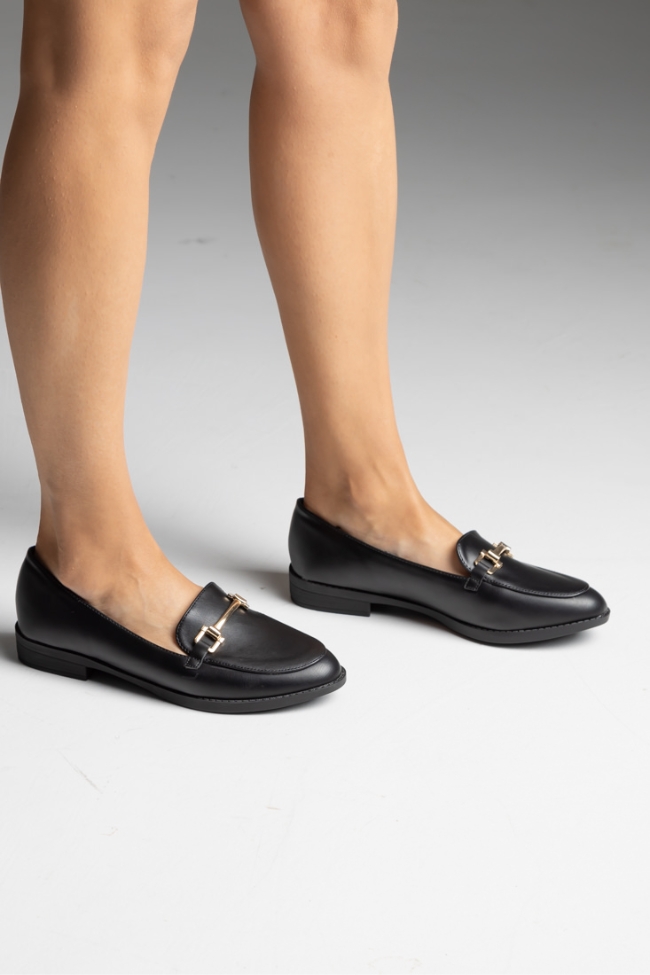 Μοκασίνια δερματίνη με χρυσό στοιχείο – Μαύρο
