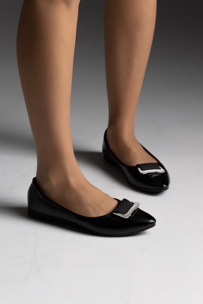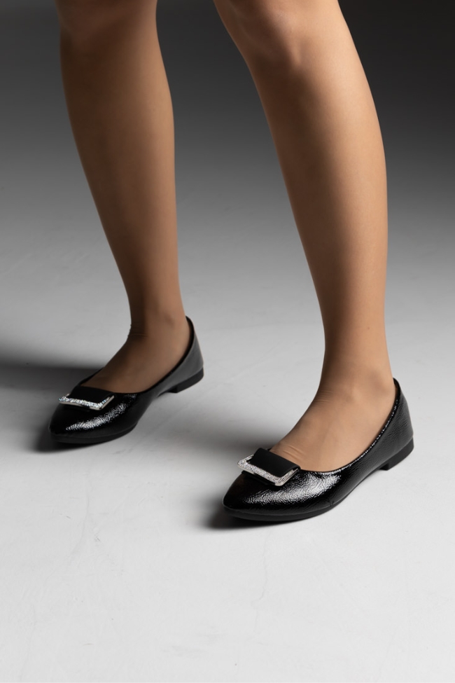 Μοκασίνια λουστρίνι με λεπτομέρεια strass στην μύτη – Μαύρο