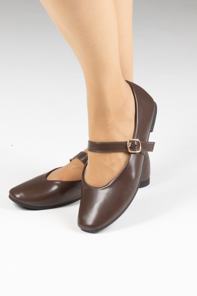 Μπαλαρίνες δερματίνη με μπαρέτα στο κουτεπιέ – Καφέ