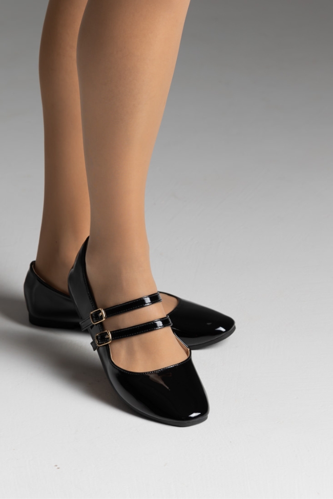 Μπαλαρίνες λουστρίνι flat με διπλή μπαρέτα .Οι διπλές ζώνες με μεταλλικές αγκράφες εξασφαλίζουν τέλεια εφαρμογή, ενώ η ελαφριά σόλα εξασφαλίζει σταθερότητα καθ’ όλη τη διάρκεια της ημέρας. Διατίθενται σε κομψά χρώματα, όπως μαύρο και μπεζ, για να συνδυάζονται εύκολα με την καθημερινή σας γκαρνταρόμπα. Δημιουργήστε casual chic εμφανίσεις φορώντας τα μαύρα Mary Jane μπαλαρινάκια με λευκό τζιν και μπλέιζερ, ιδανικό για βόλτες ή το γραφείο. Τα μπεζ ταιριάζουν τέλεια με ένα ανάλαφρο φόρεμα ή μια φούστα σε παστέλ τόνους, ιδανικά για καλοκαιρινές εξόδους. Μπορούν επίσης να φορεθούν με cropped παντελόνια και πουκάμισα για ένα μοντέρνο look.