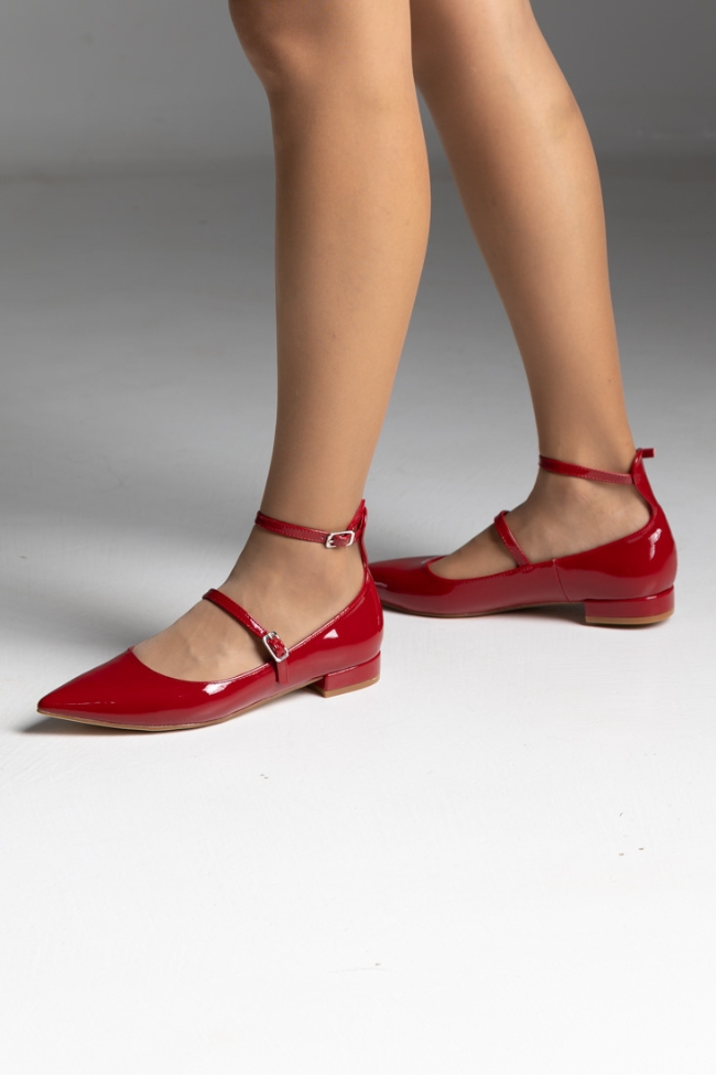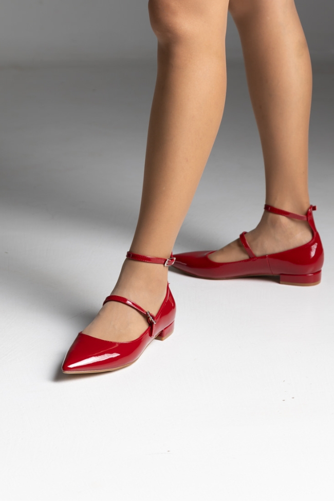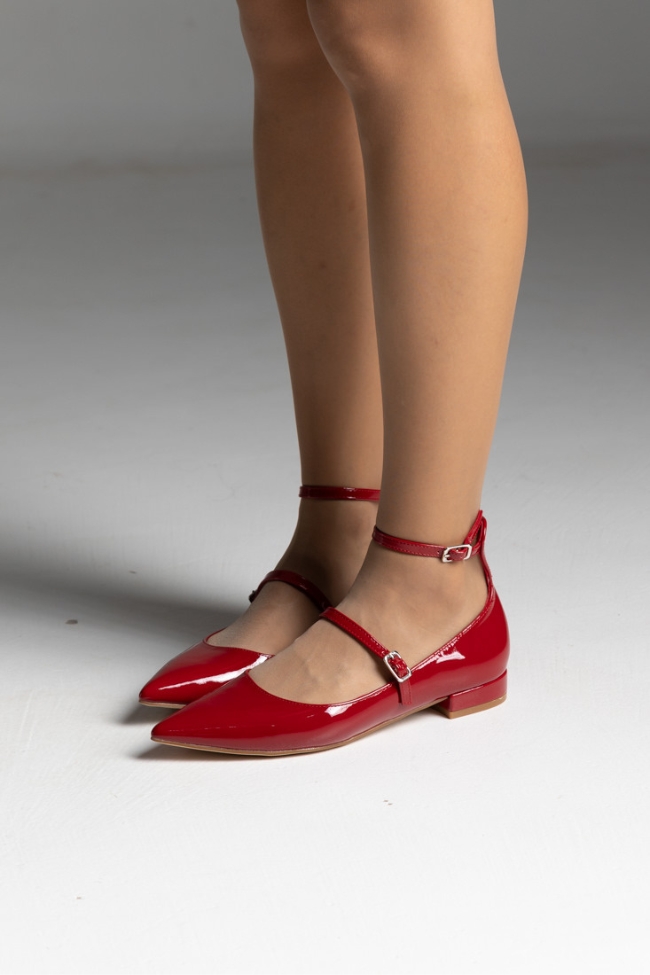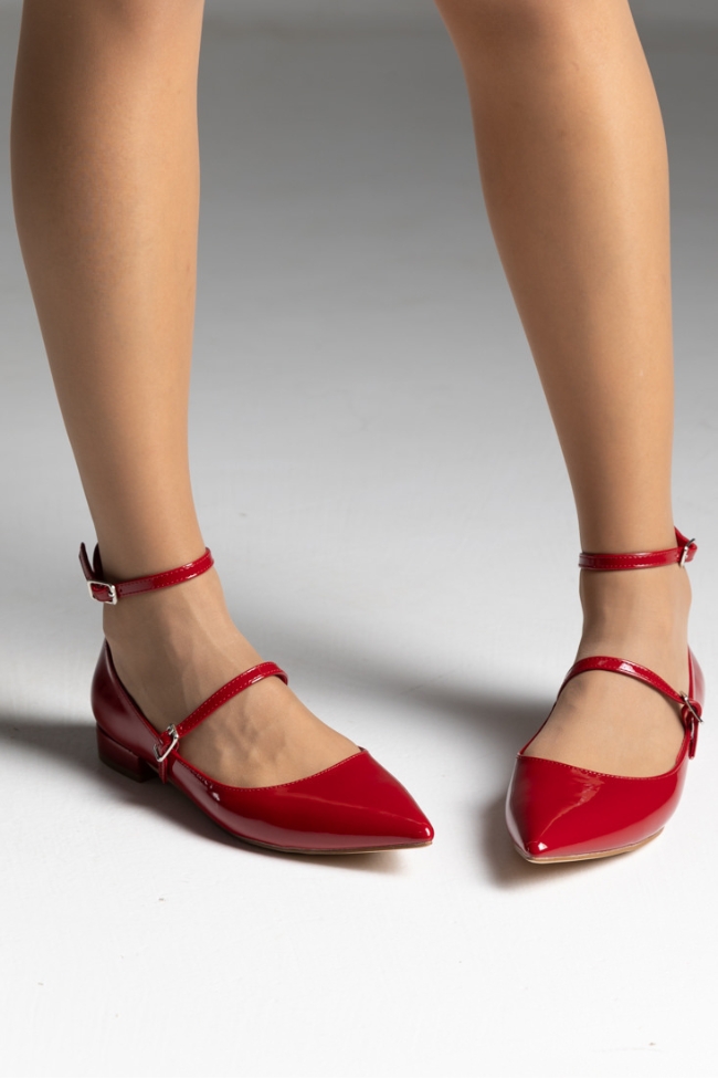 Μπαλαρίνες λουστρίνι flat με δύο λεπτά λουράκια – Κόκκινο