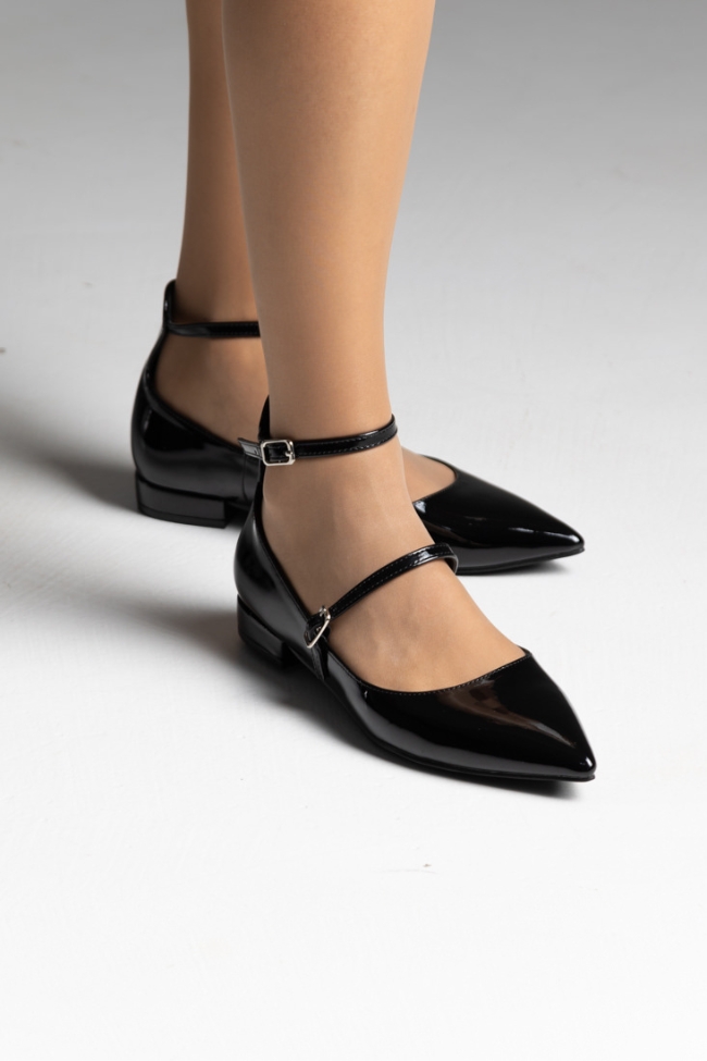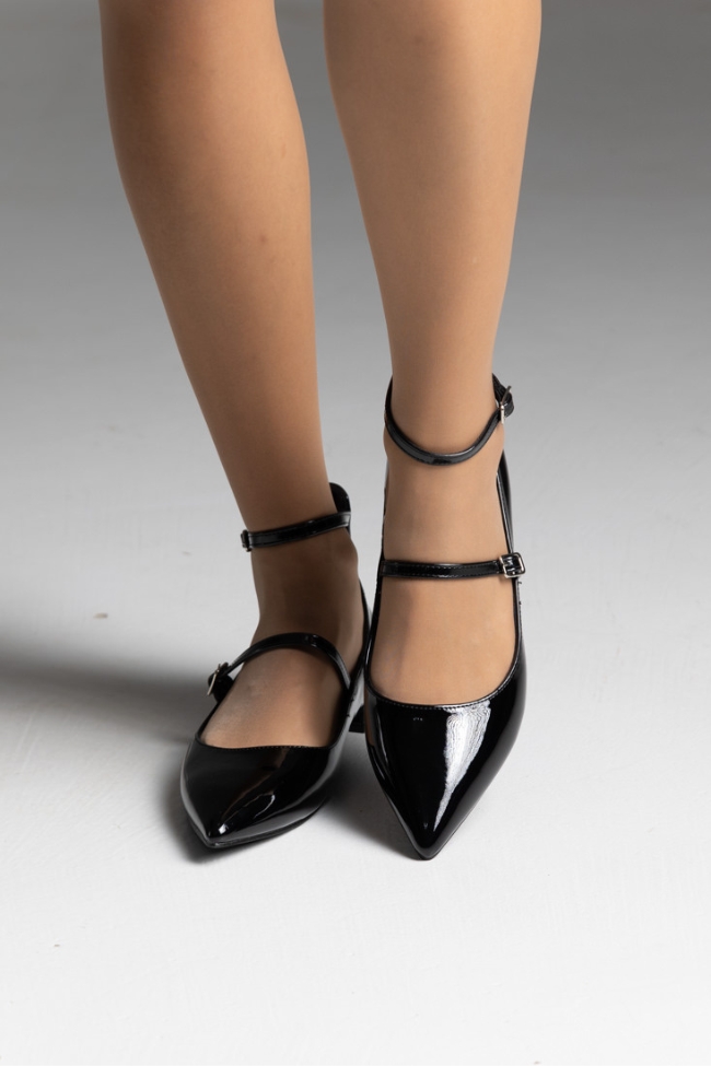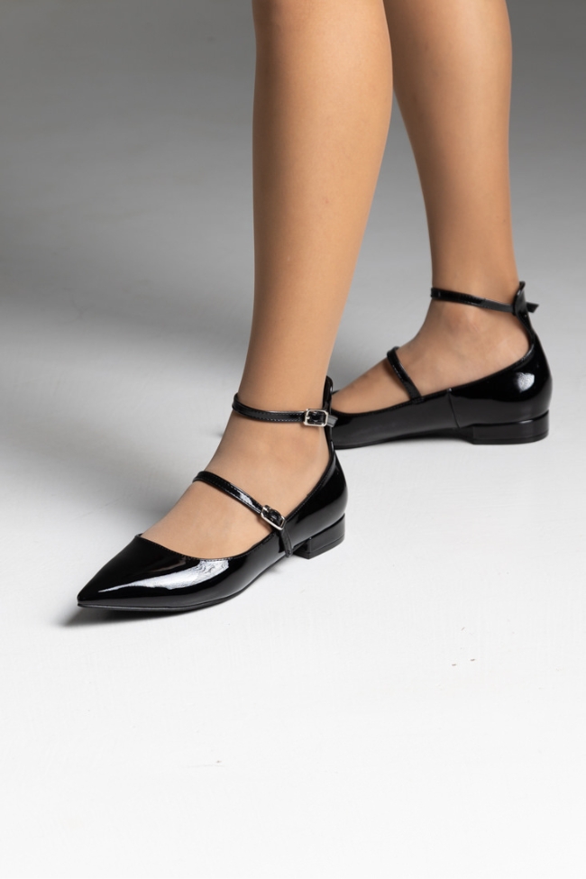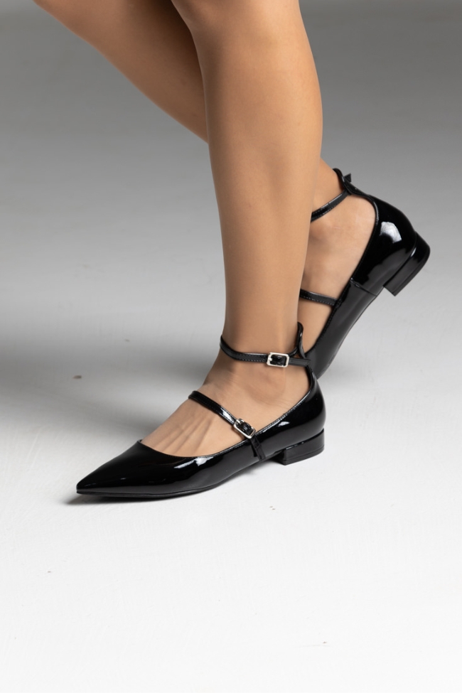 Μπαλαρίνες λουστρίνι flat με δύο λεπτά λουράκια – Μαύρο