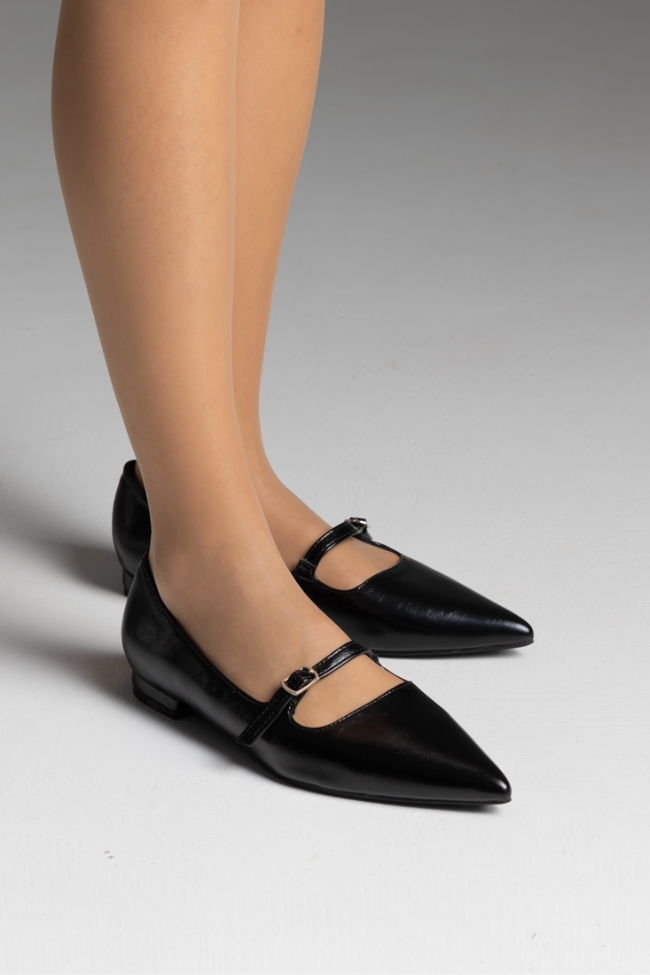 Μπαλαρίνες λουστρίνι flat με μπαρέτα – Μαύρο