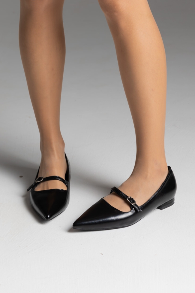 Μπαλαρίνες λουστρίνι flat με μπαρέτα .
