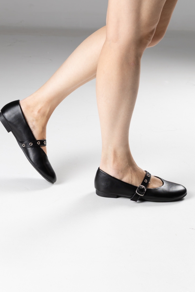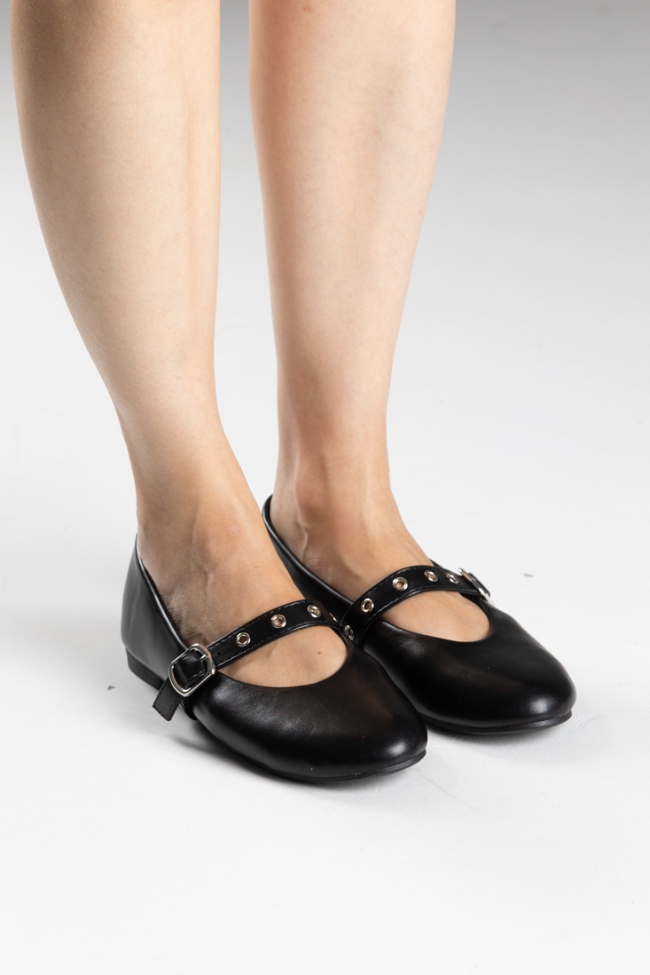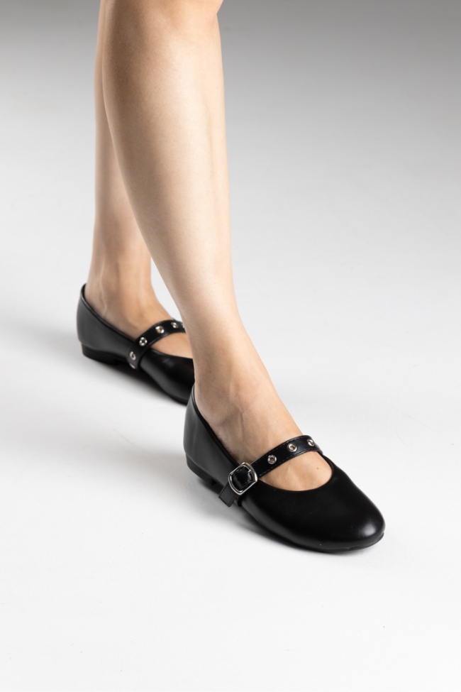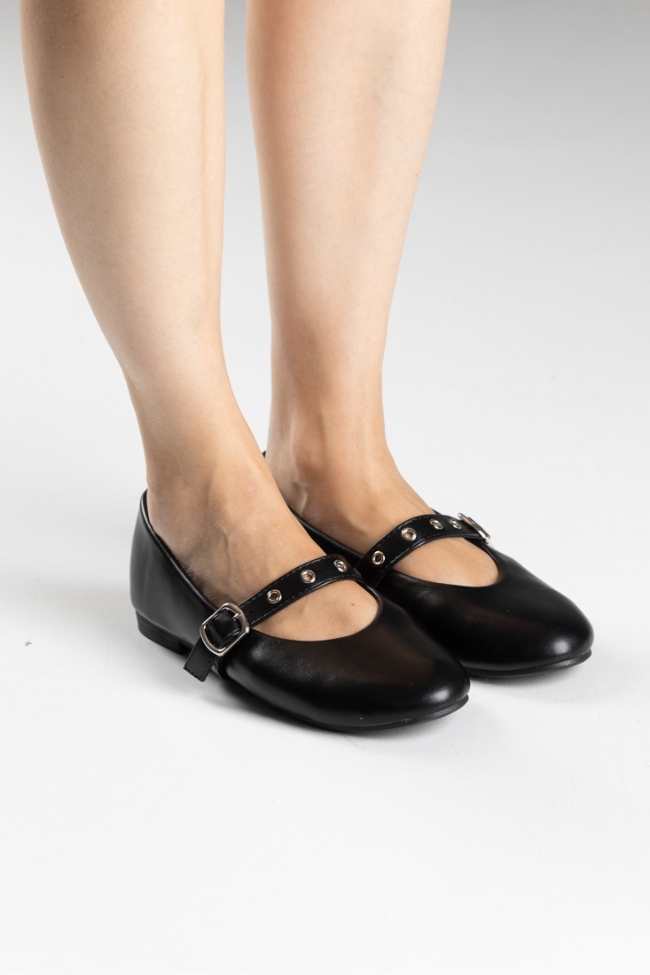 Μπαλαρίνες δερματίνη σε μαύρο χρώμα, με μπαρέτα στο κουτεπιέ .