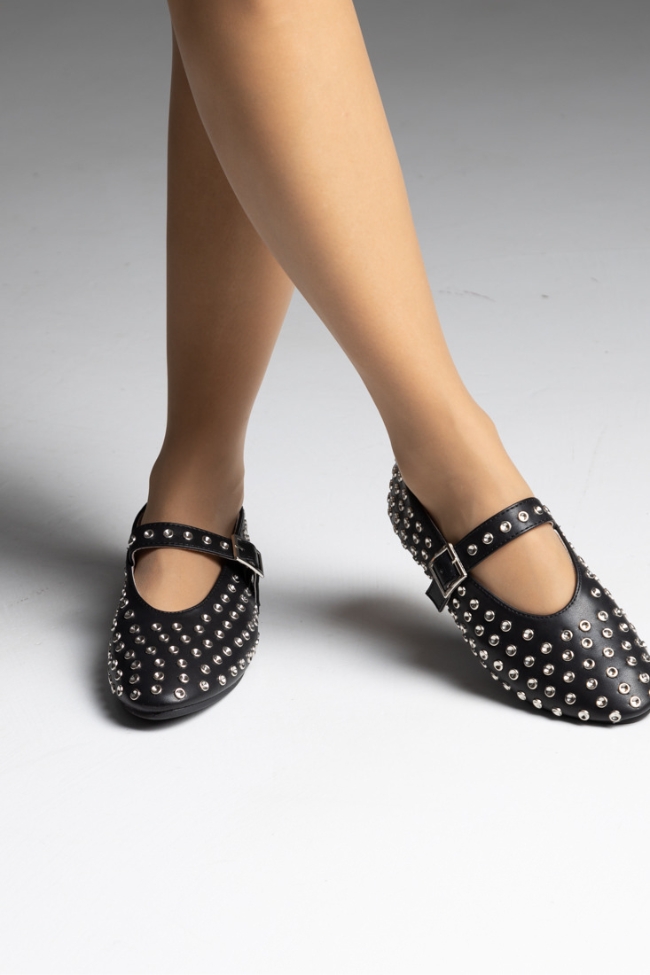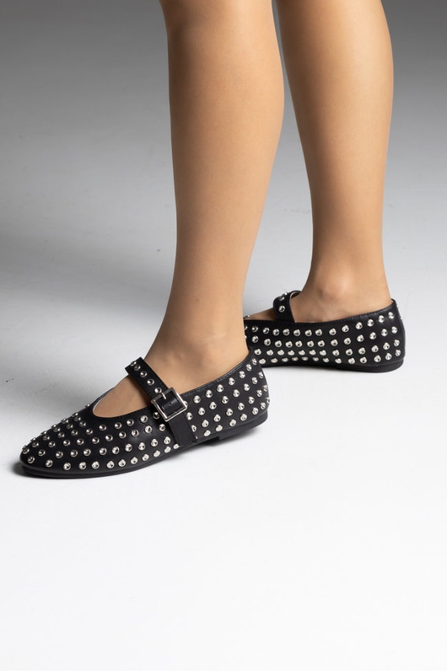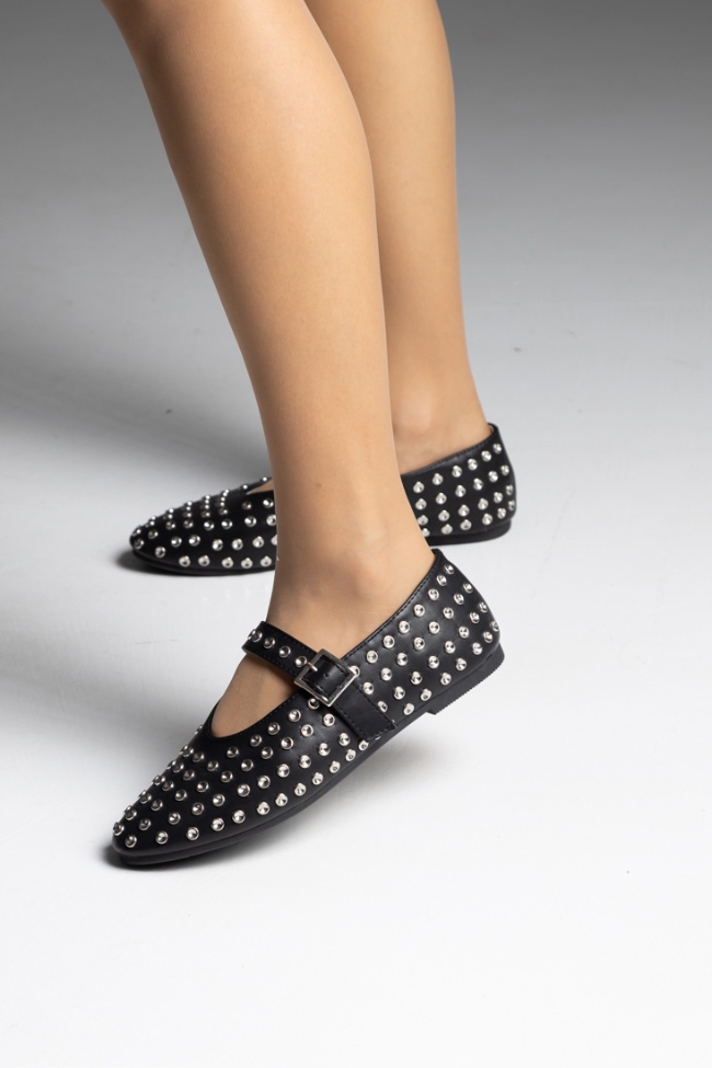 Μπαλαρίνες σε χρώμα μαύρο ,δερματίνη flat με μπαρέτα και διακοσμητικά strass