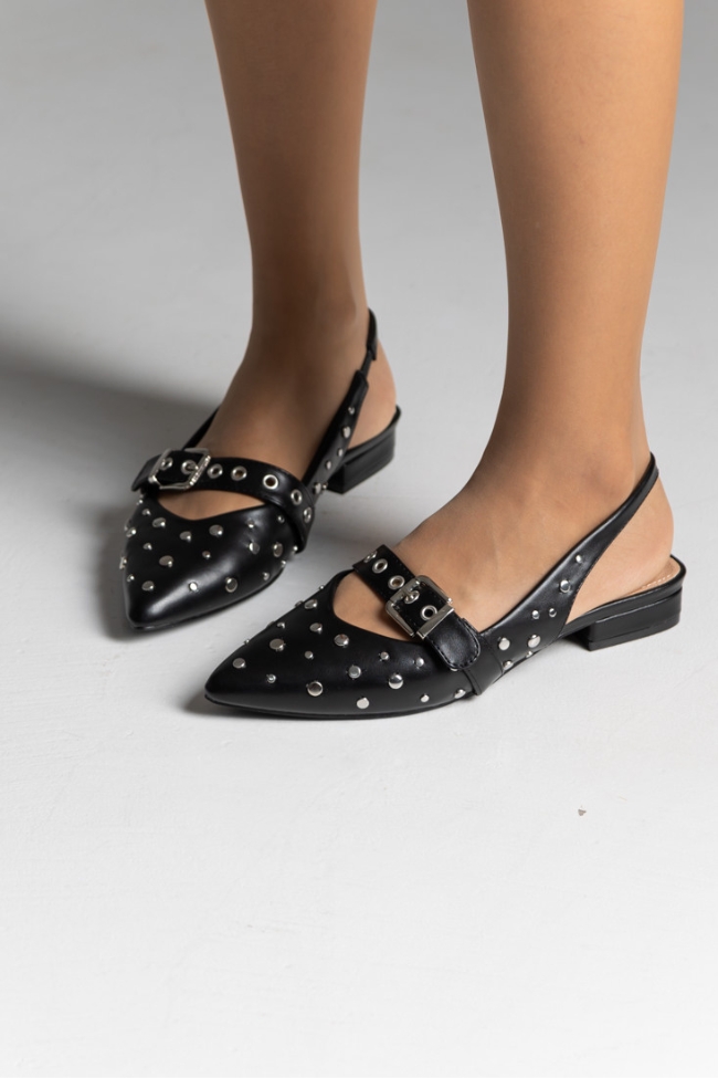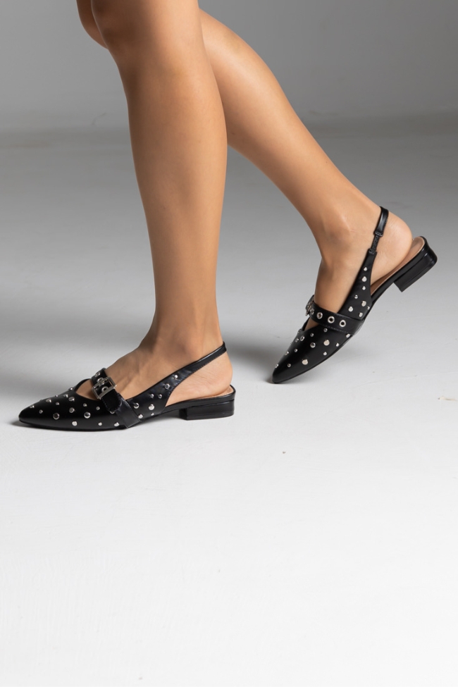 Μπαλαρίνες flat mule με τρουκς – Μαύρο