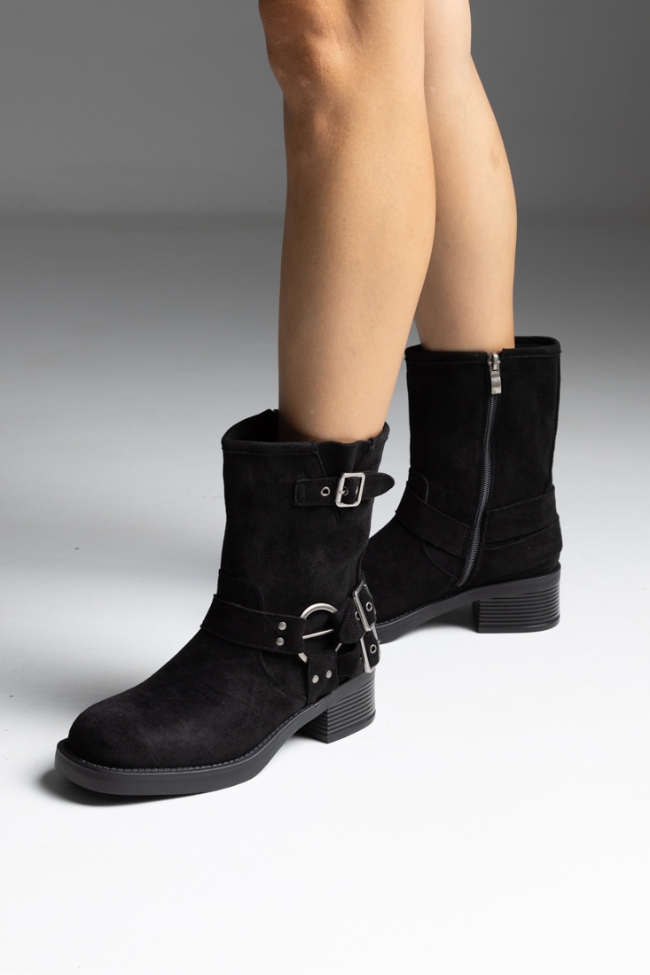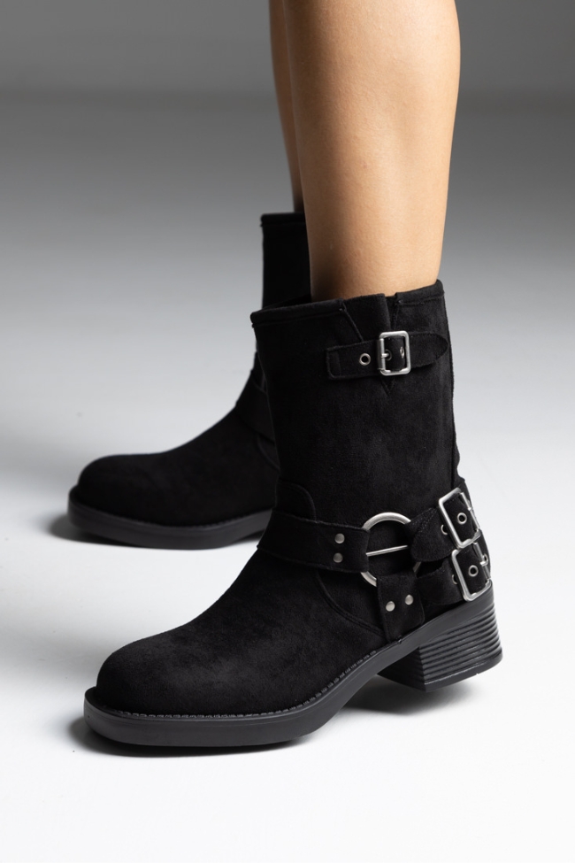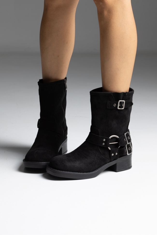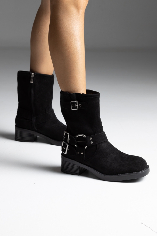Μποτάκια biker suede με κρίκο – Μαύρο
