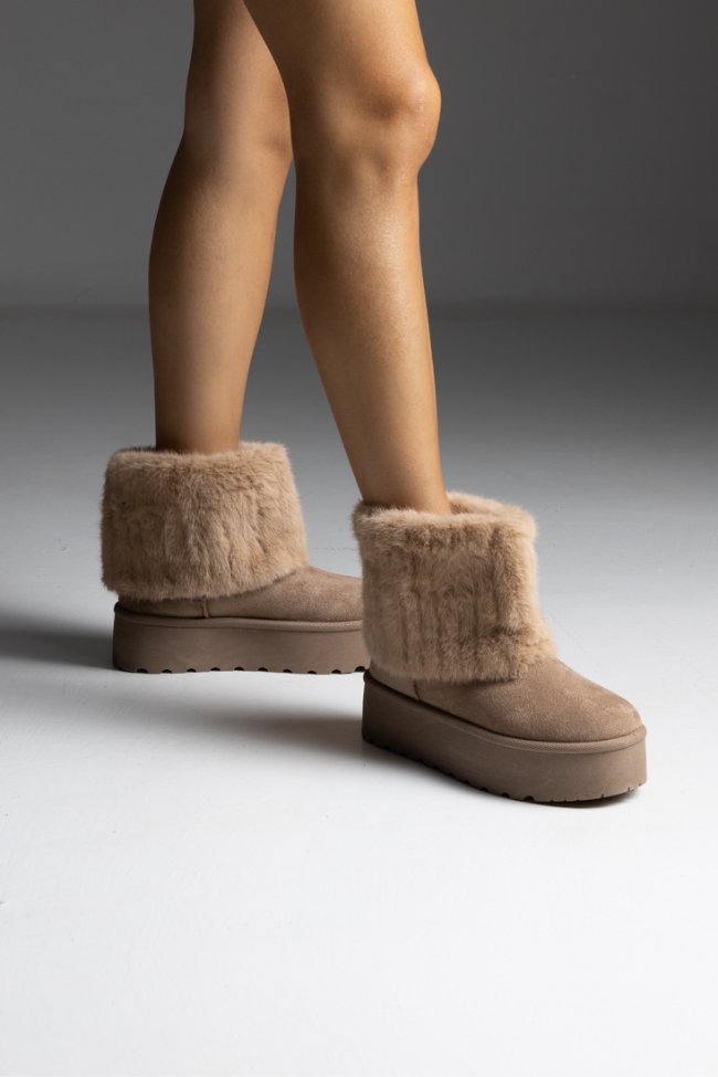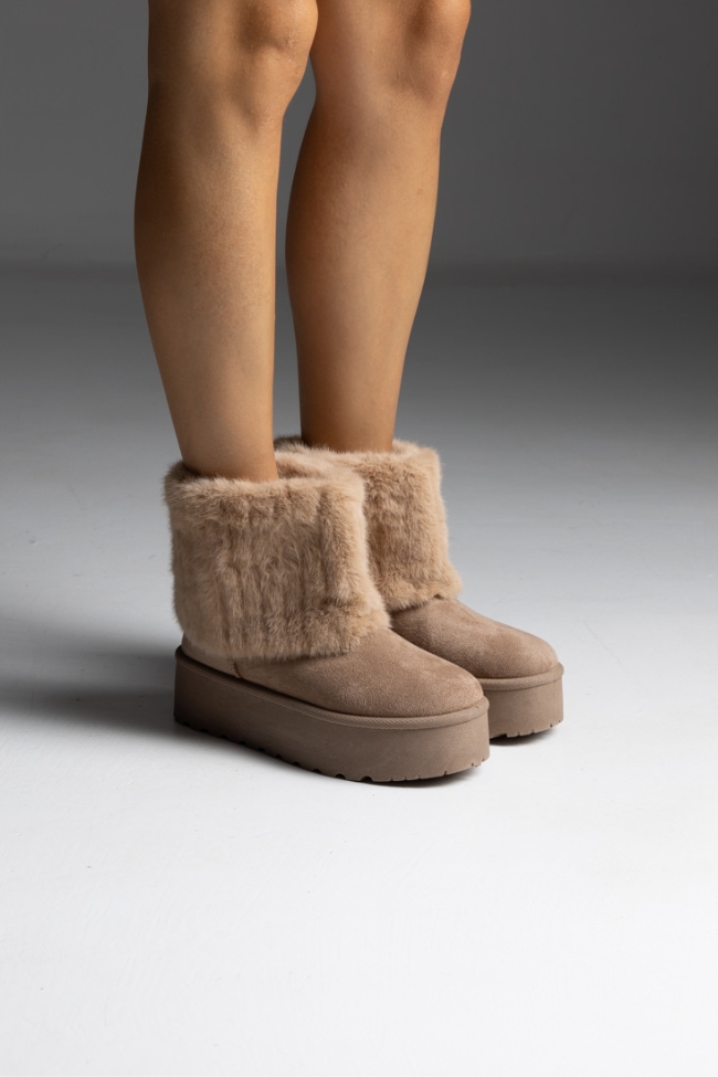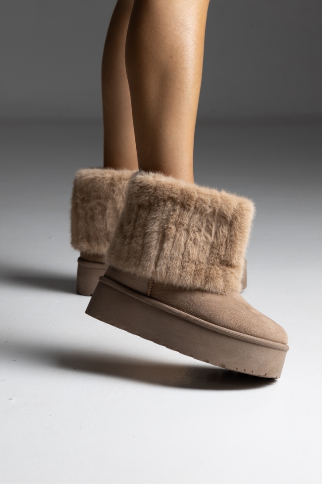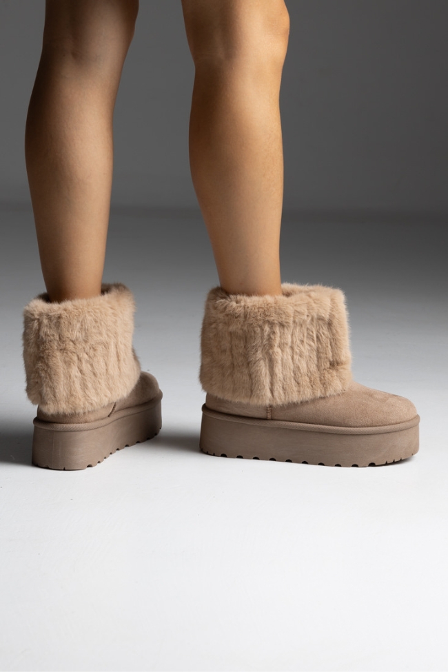 Μποτάκια Δίσολα με Γούνα -Μπέζ Σκούρο