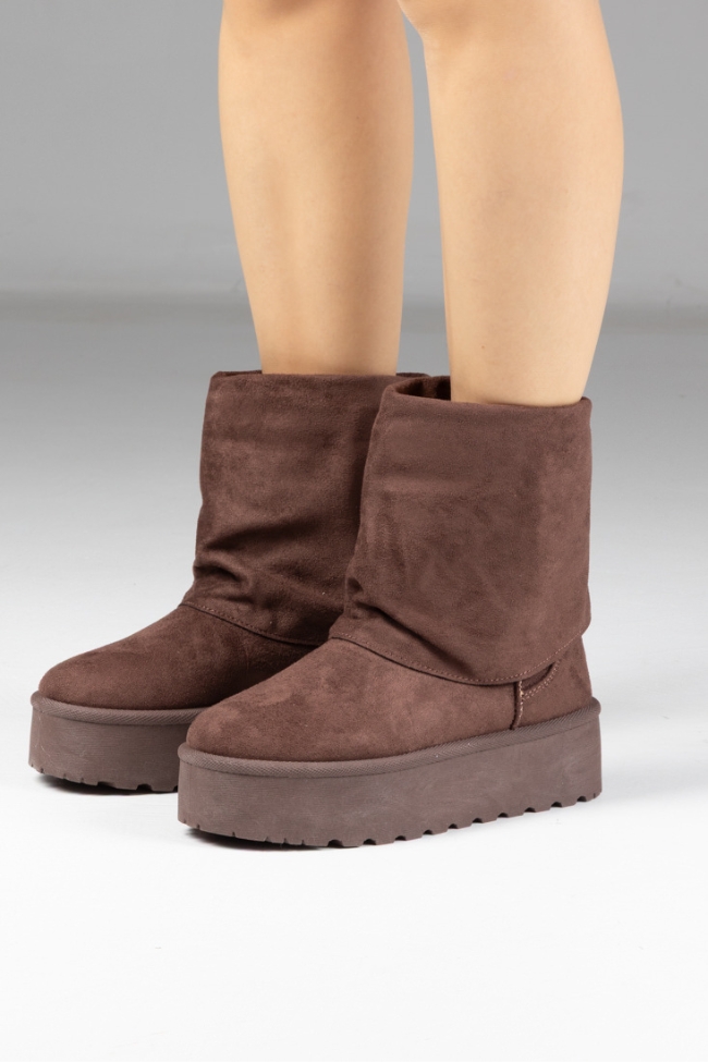 Μποτάκια Δίσολα με Εφέ Αναδιπλούμενης Φάσας – Καφέ