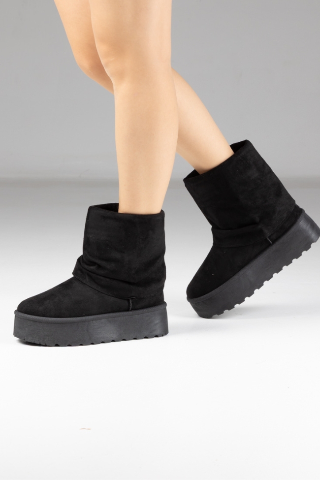 Μποτάκια Δίσολα με Εφέ Αναδιπλούμενης Φάσας – Μαύρο