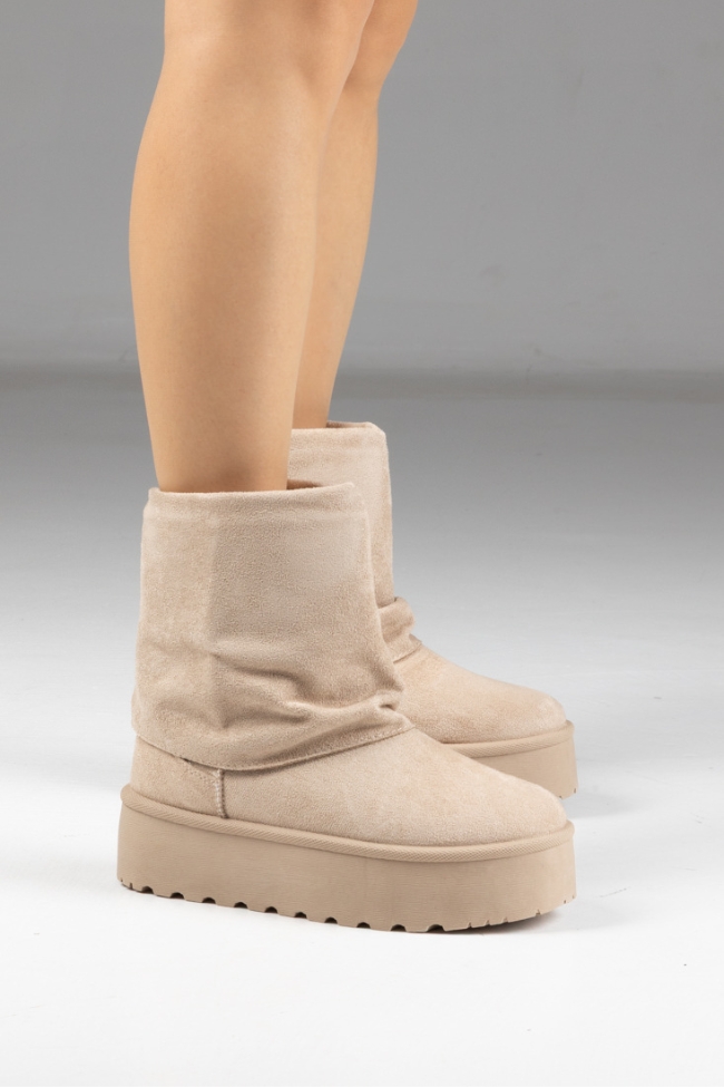 Μποτάκια Δίσολα με Εφέ Αναδιπλούμενης Φάσας – Μπεζ